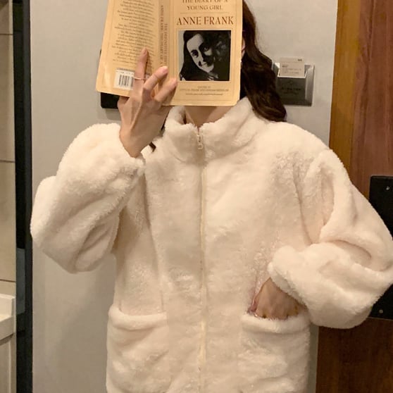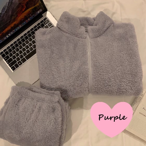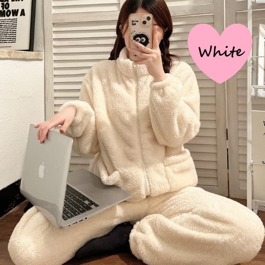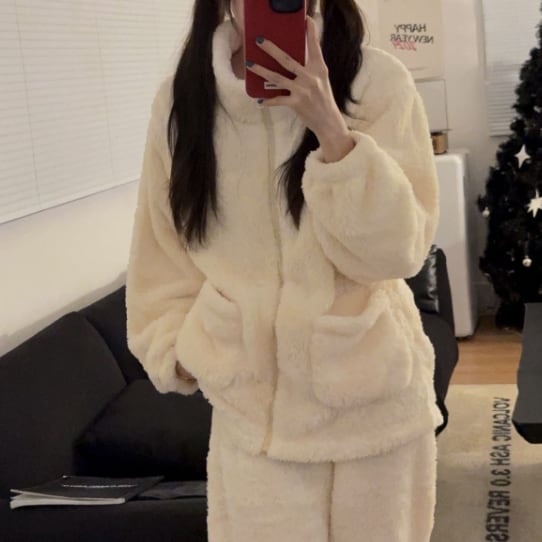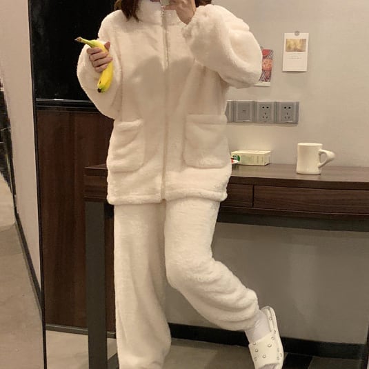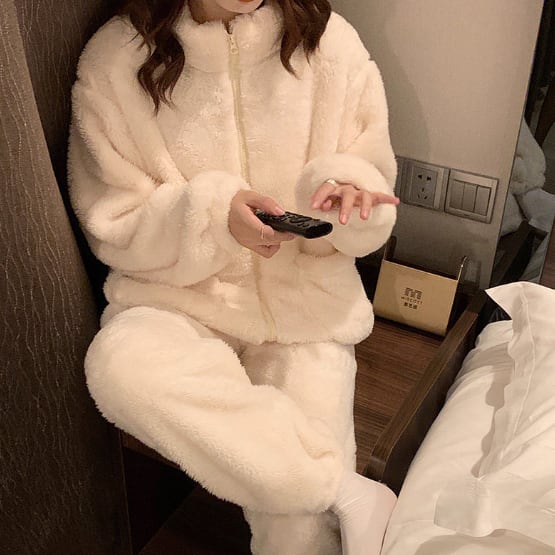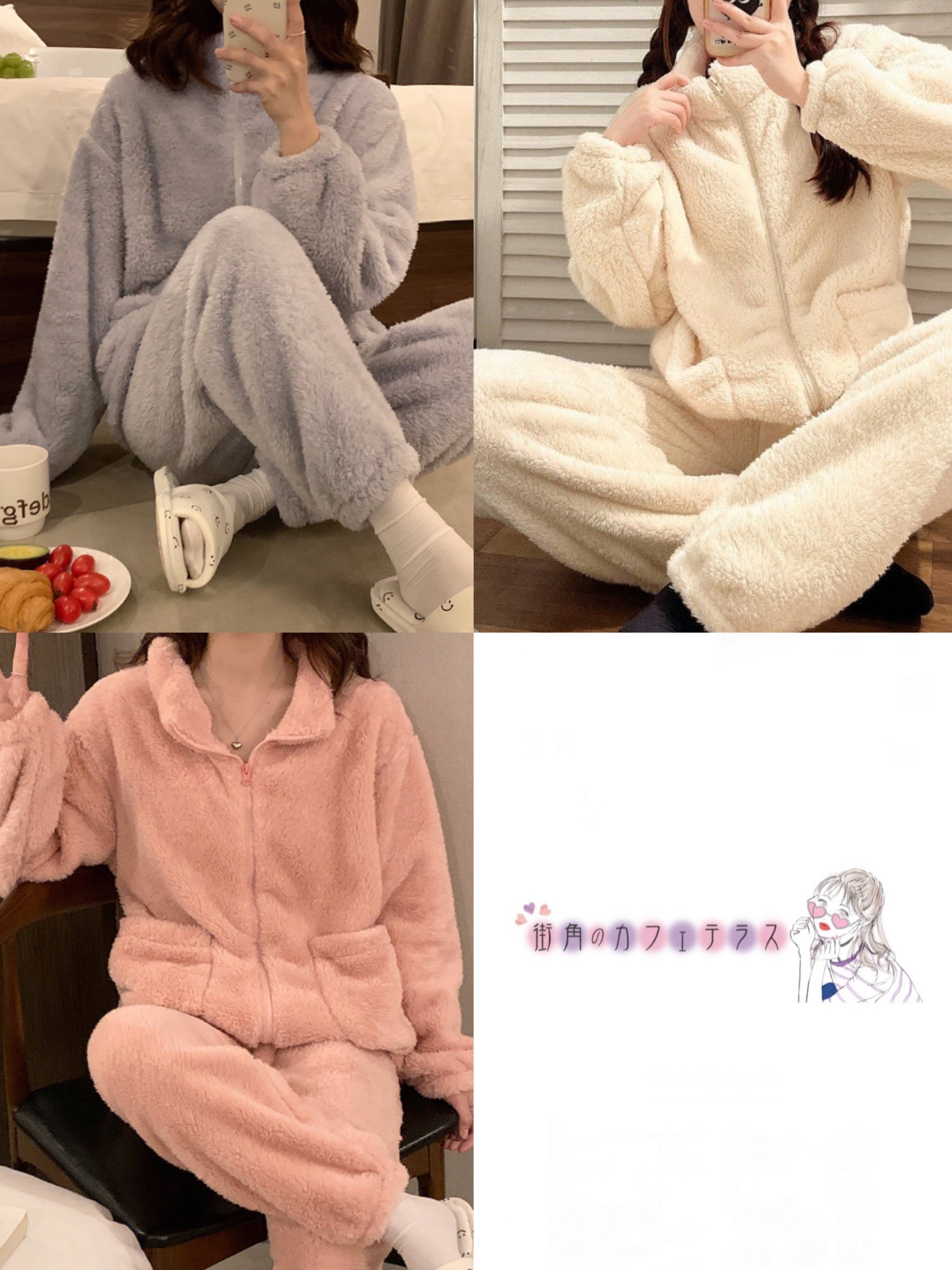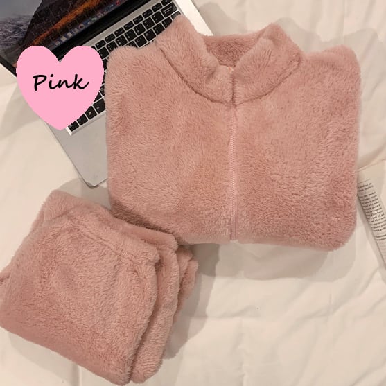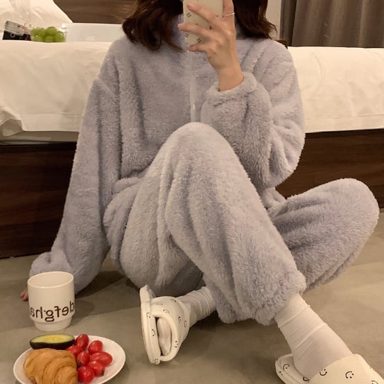 寒い日にピッタリのもこもこフリースパジャマの上下セット