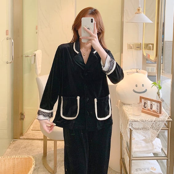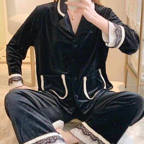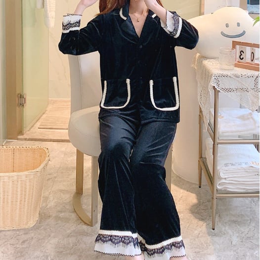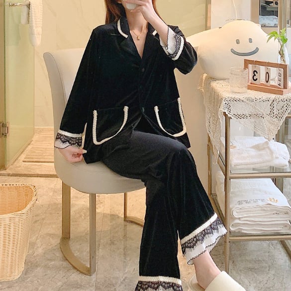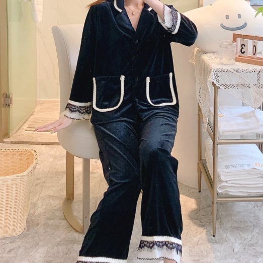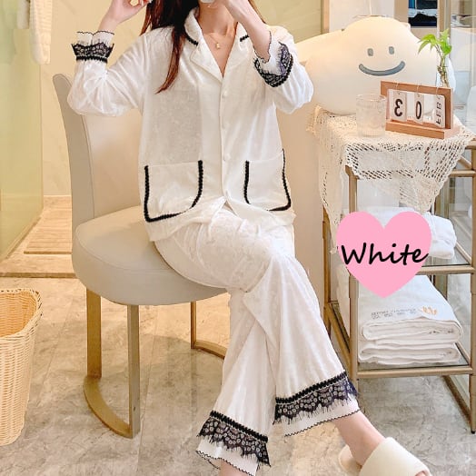 レース装飾が可愛いパジャマの上下セットです