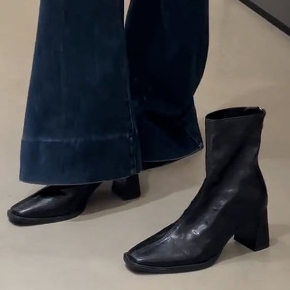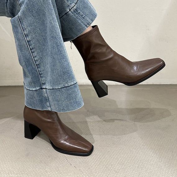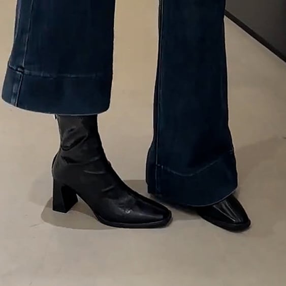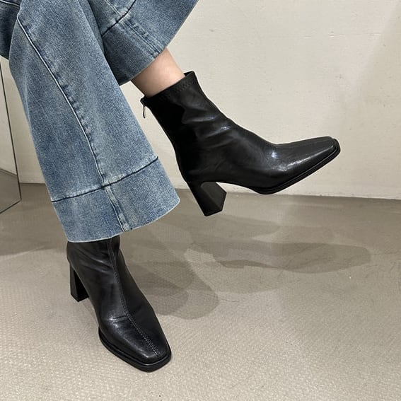 安定感があり歩きやすいチャンキーヒールのハイヒールブーツです
