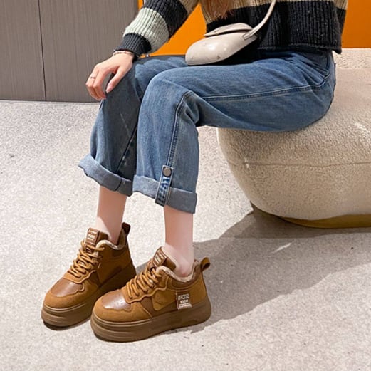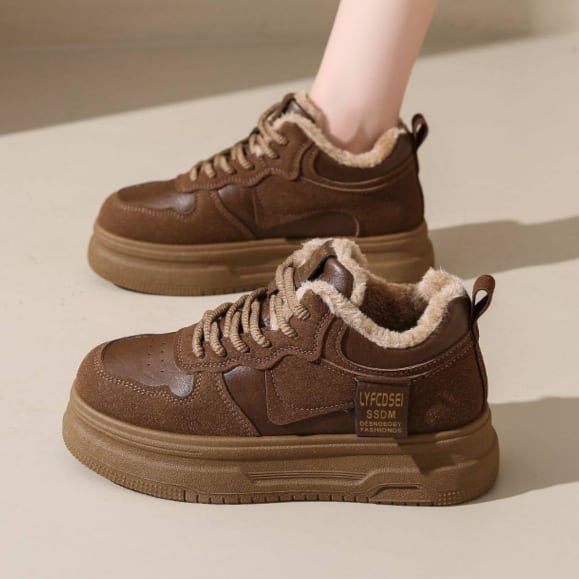 ふわふわ裏起毛のレースアップスニーカーです