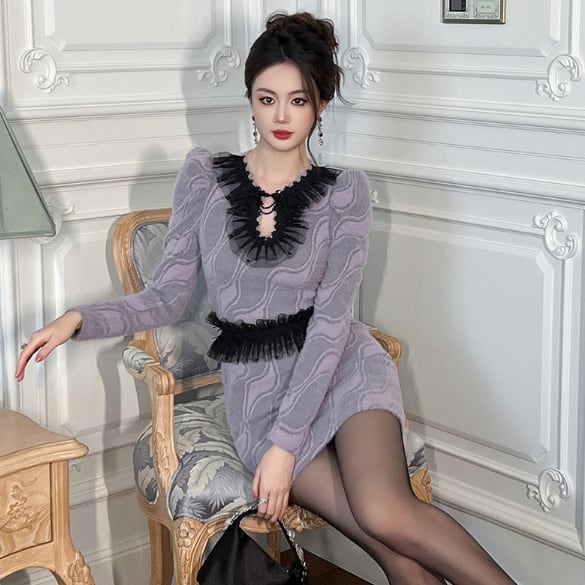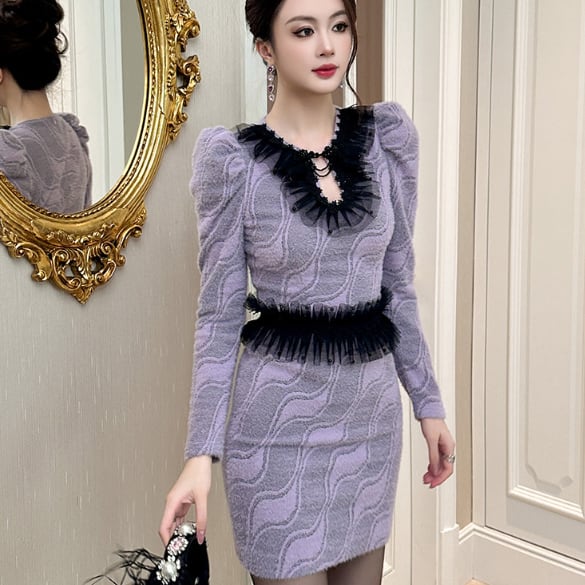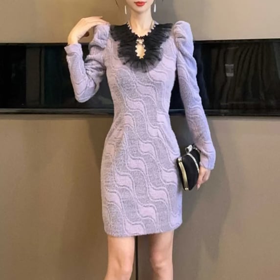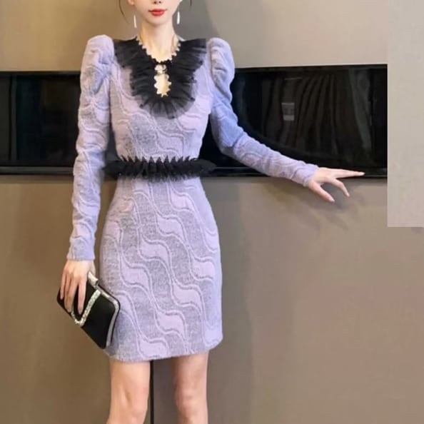 パフスリーブのミニドレスです