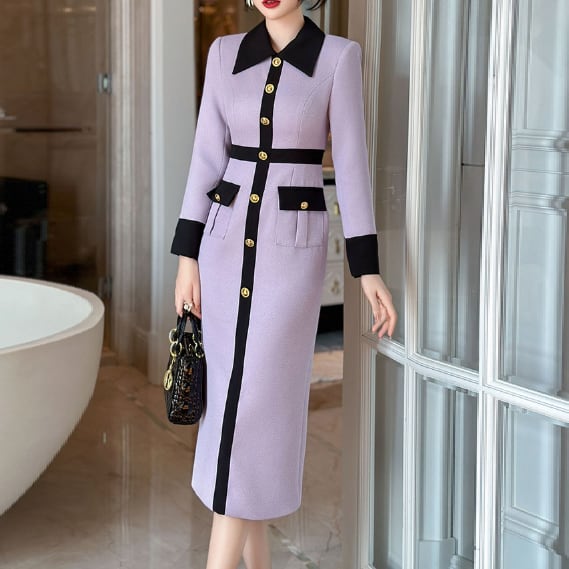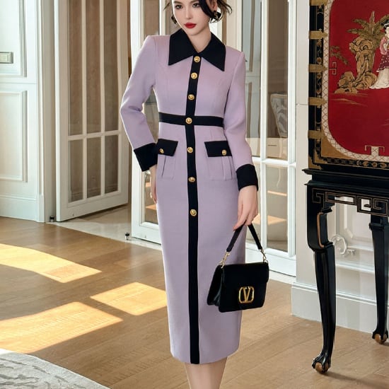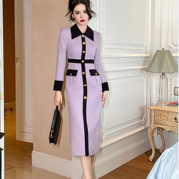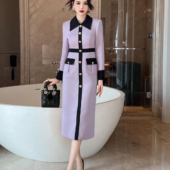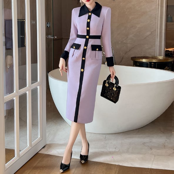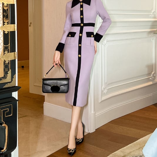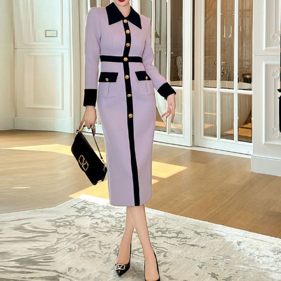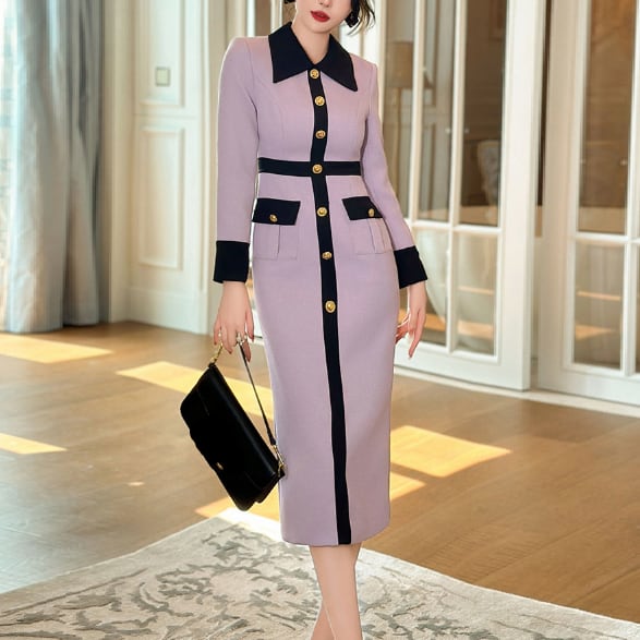 ニュアンスカラーのペンシルドレスです