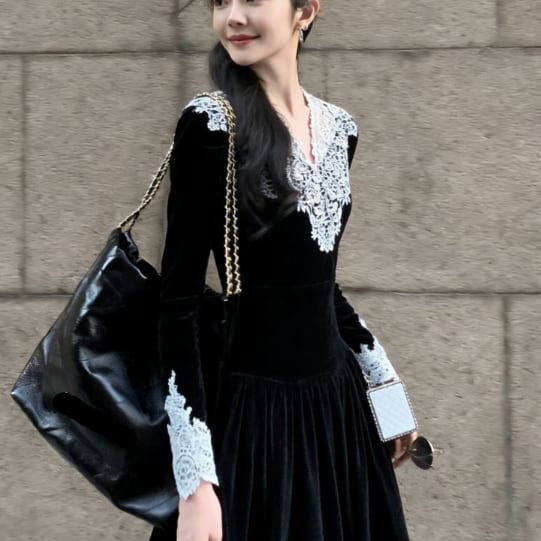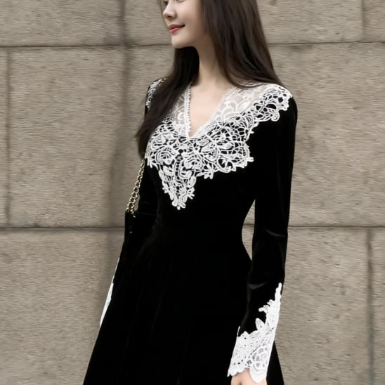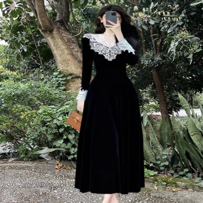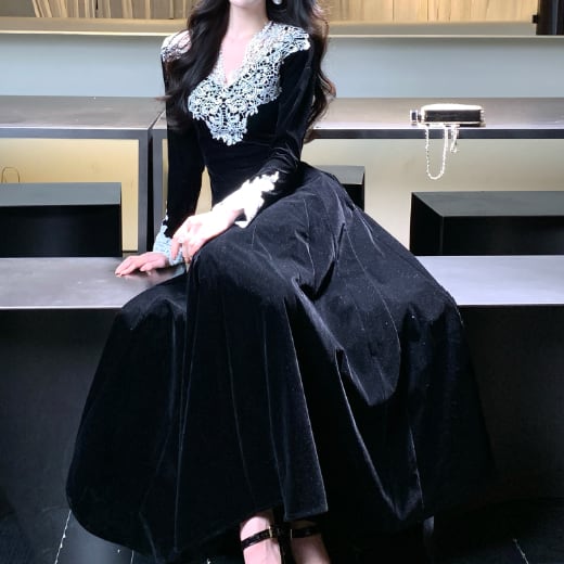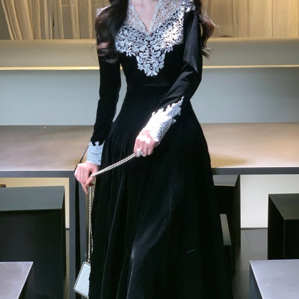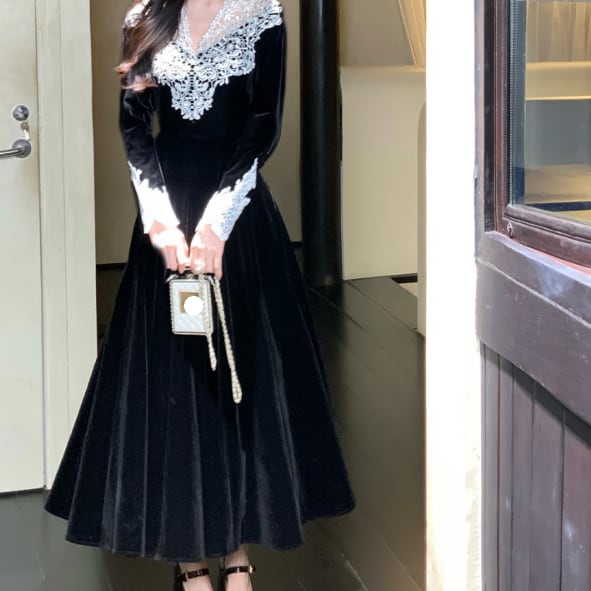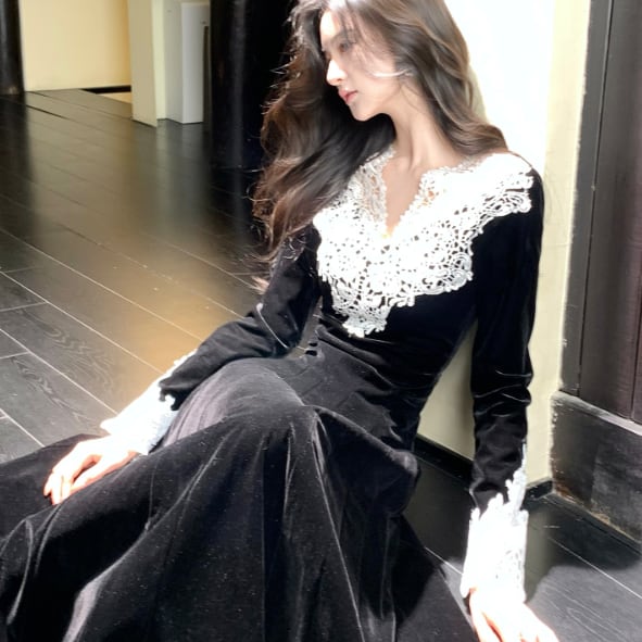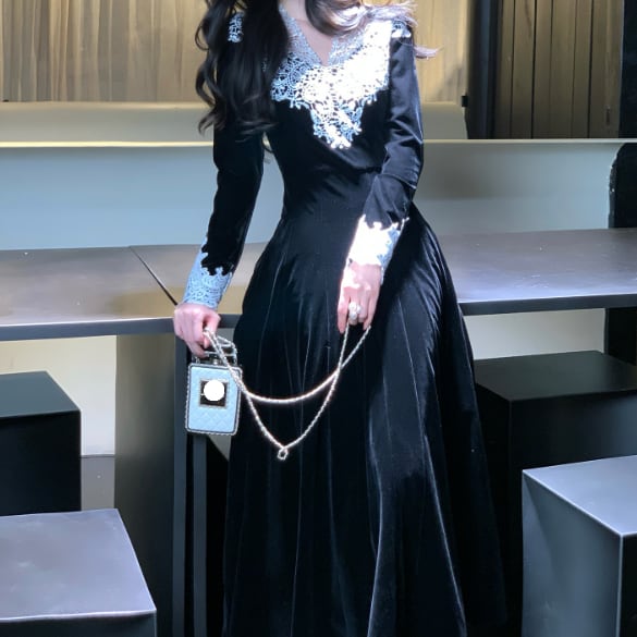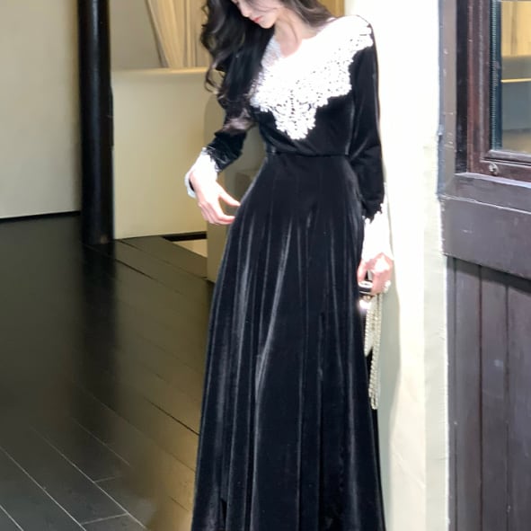 レース装飾が可愛いロングドレスです
