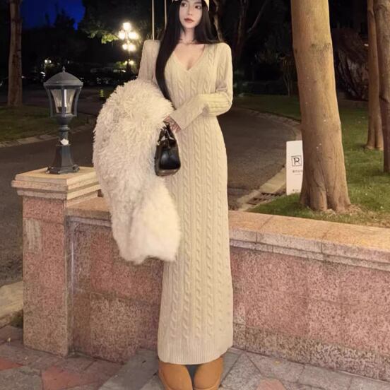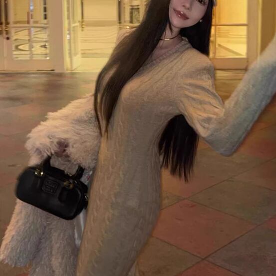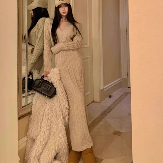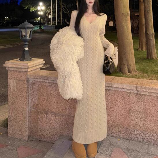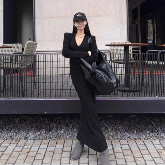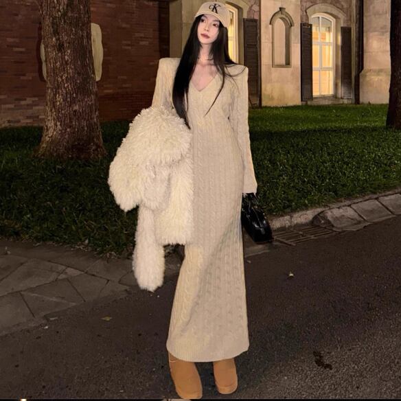 ザックリとしたVネックが顔回りをスッキリと見せてくれます