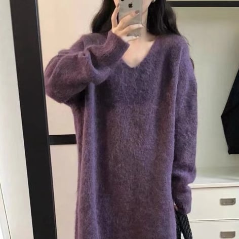 ふんわりとした柔らかな手触りのニットセーターです。