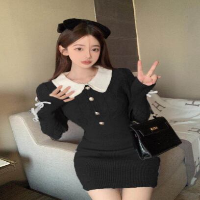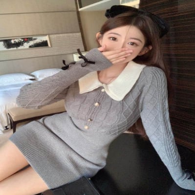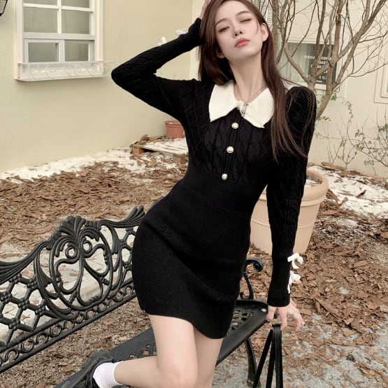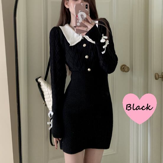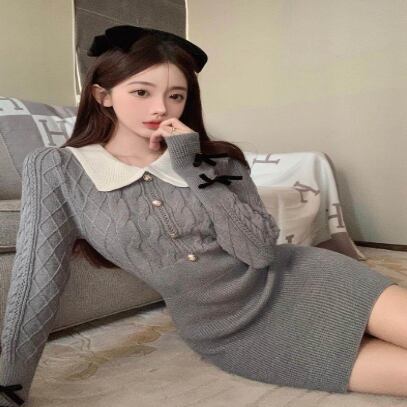 ケーブルニット風のリブニットワンピースです