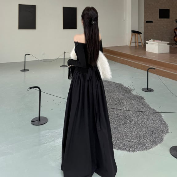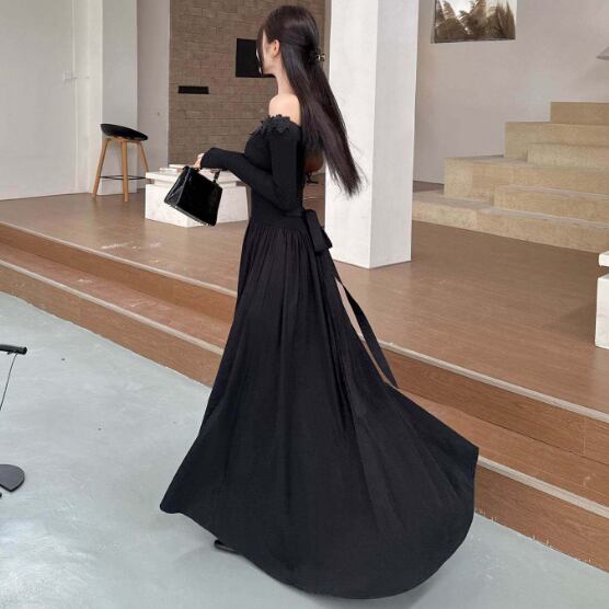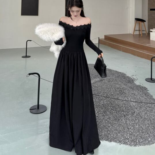 シンプルなデザインながらも、オフショルダーとフレアのシルエットが大人の可愛らしさを引き立ててくれます♪