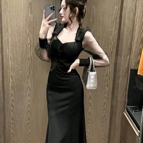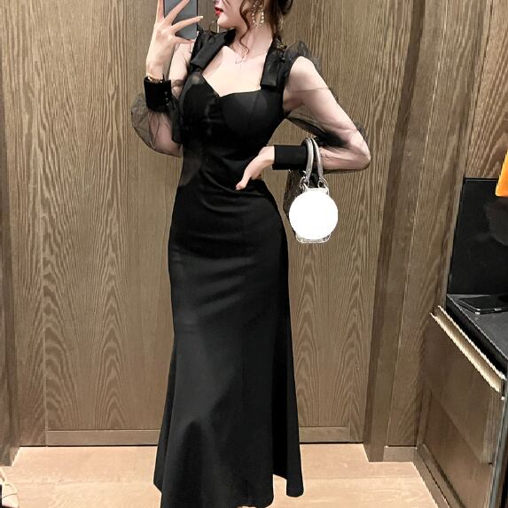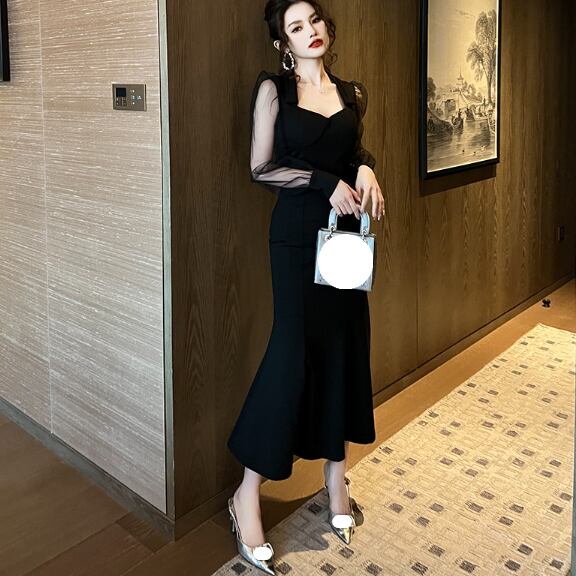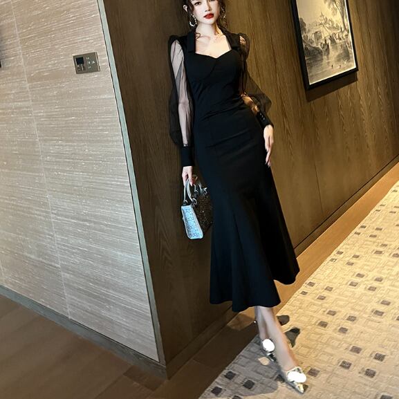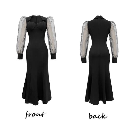 透け感が可愛いマキシ丈のマーメイドドレスです