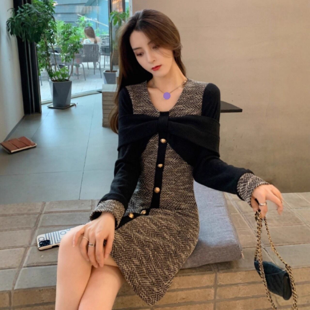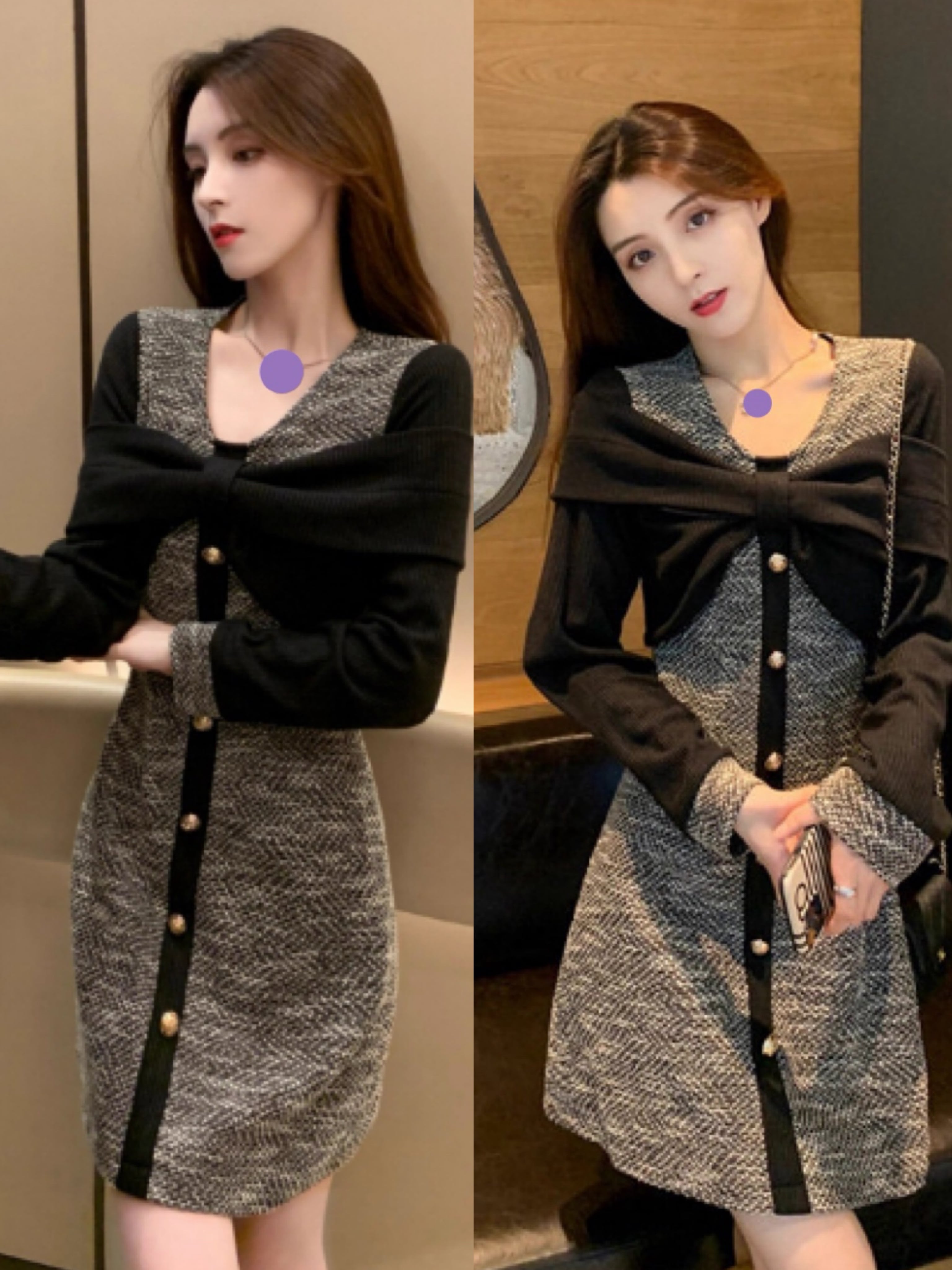 Aラインのフレアシルエットが女性らしさを引き立て、 Vネックとリボンのディテールが華やかさを添えます♡