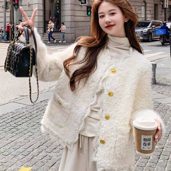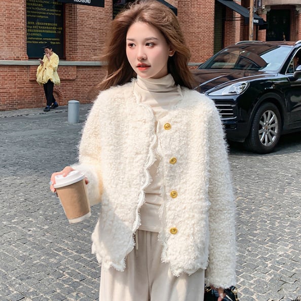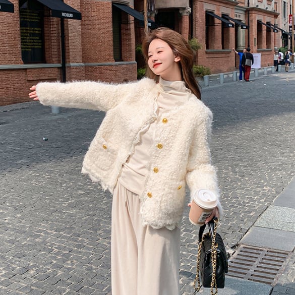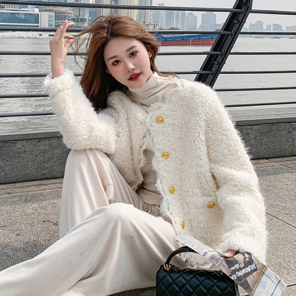 ふわふわとした手触りが特徴的なボアジャケットです