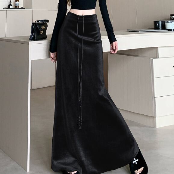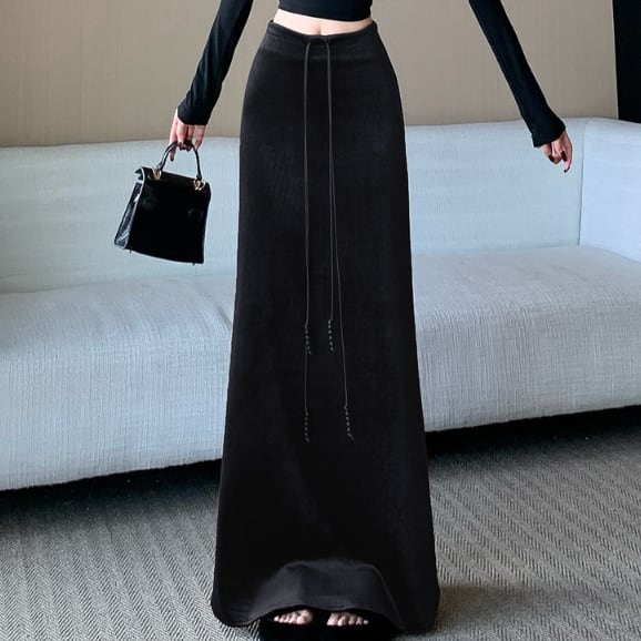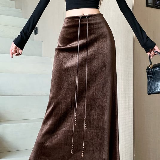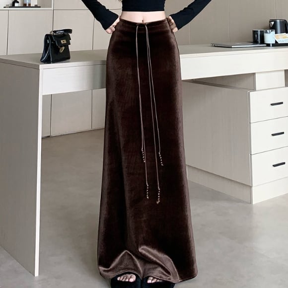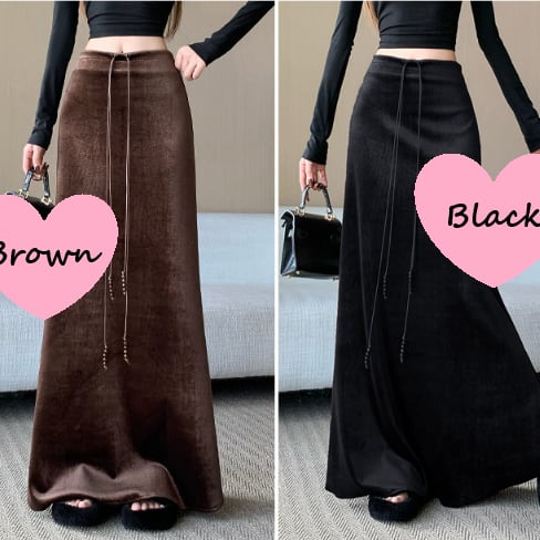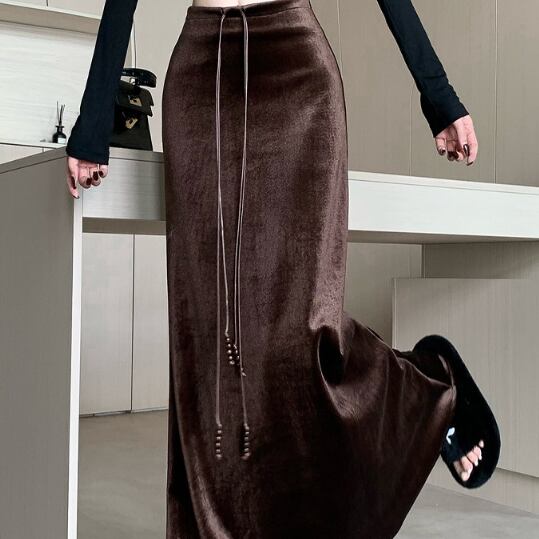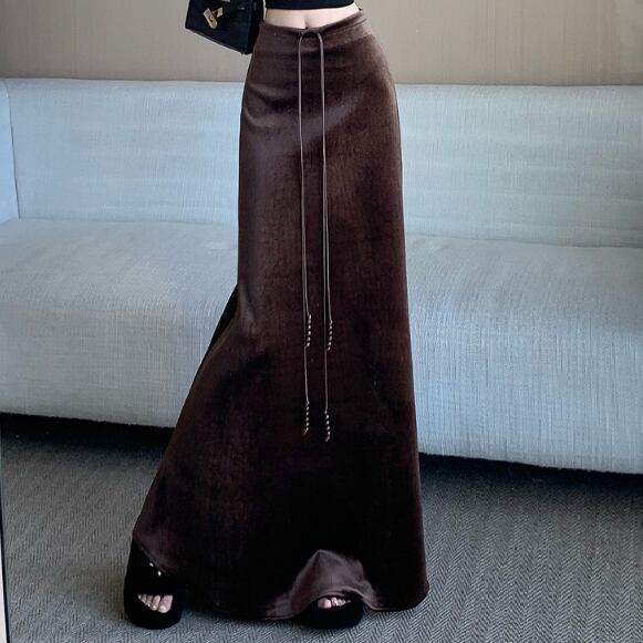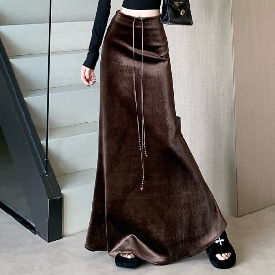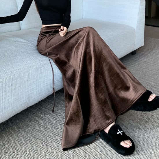 ベロア特有の上品な光沢が特徴的なロングスカートです