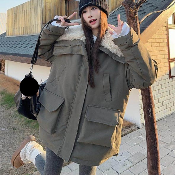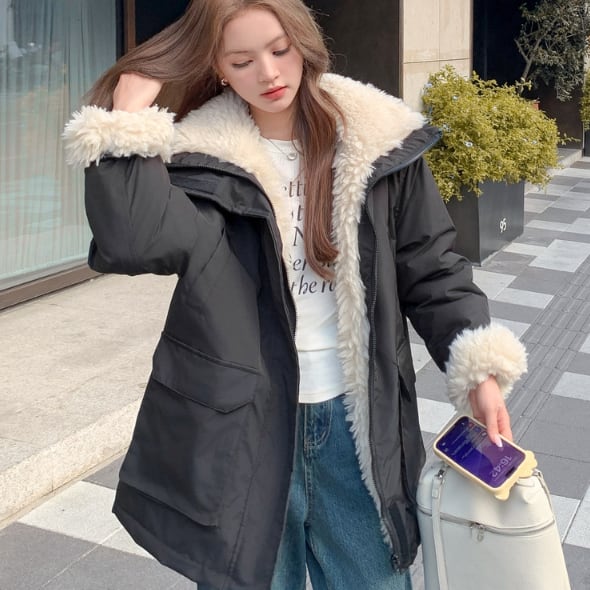 厚手生地を使用しており、ハイネックとフード付きのデザインが防寒対策をしっかりサポートします。