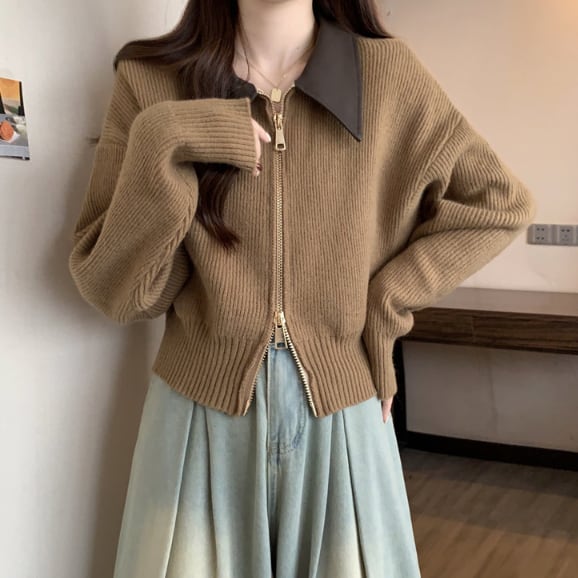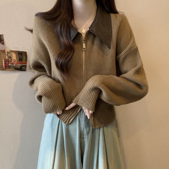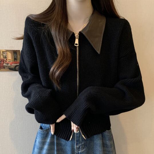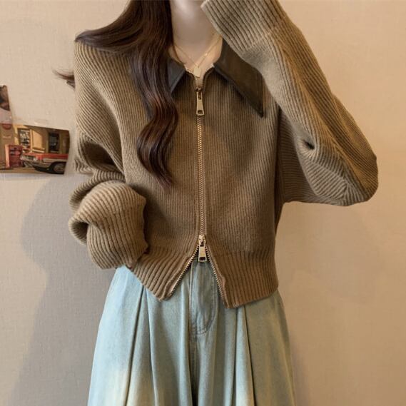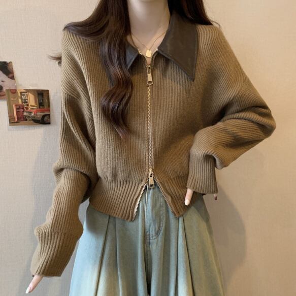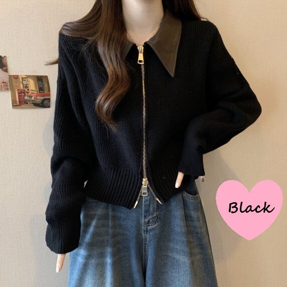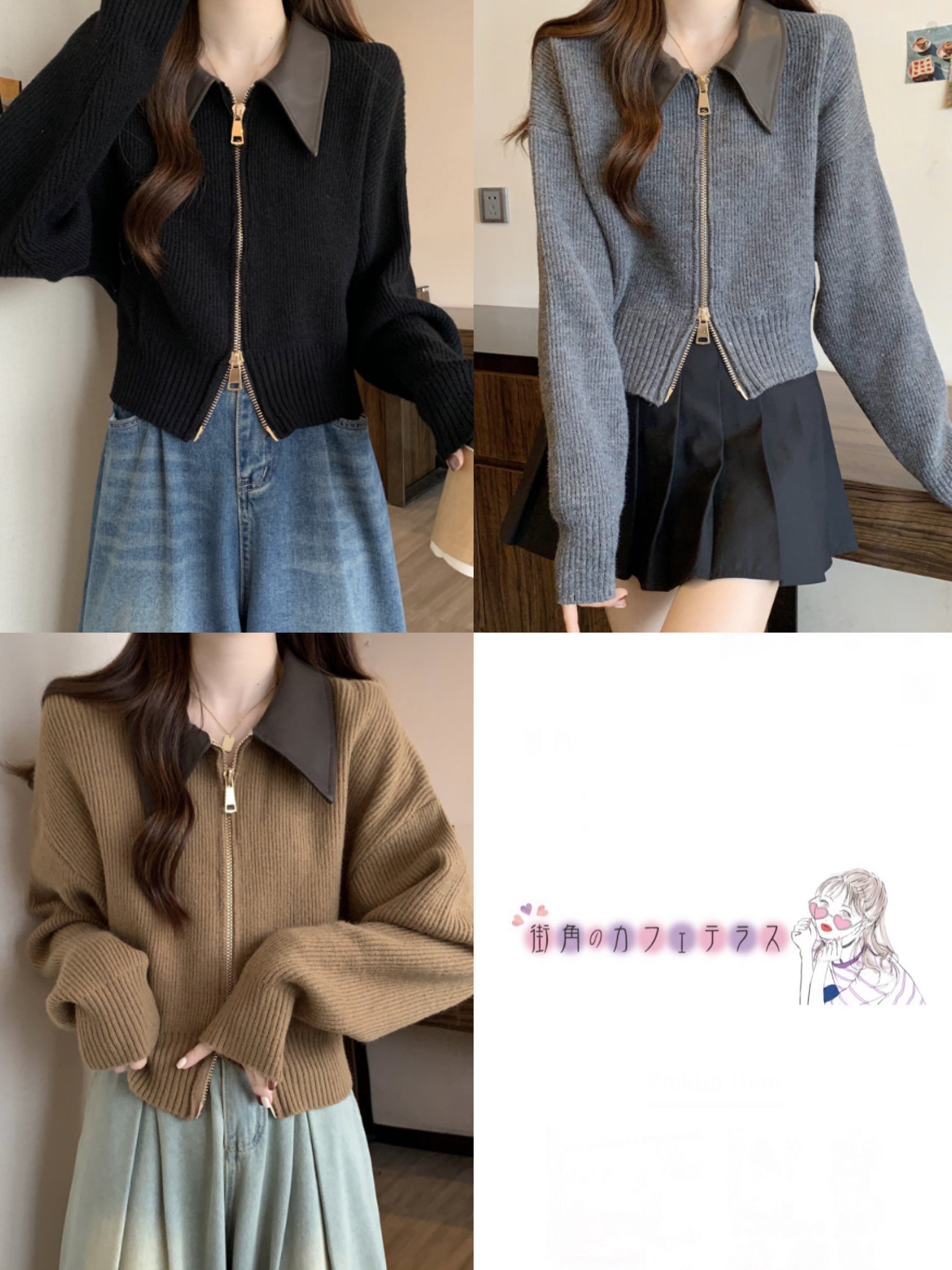 襟部分がレザー切り替えになっており、オシャレ感があります