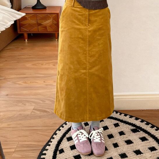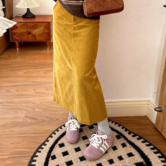厚手のロングスカートで、冬のお出かけにぴったりなアイテム