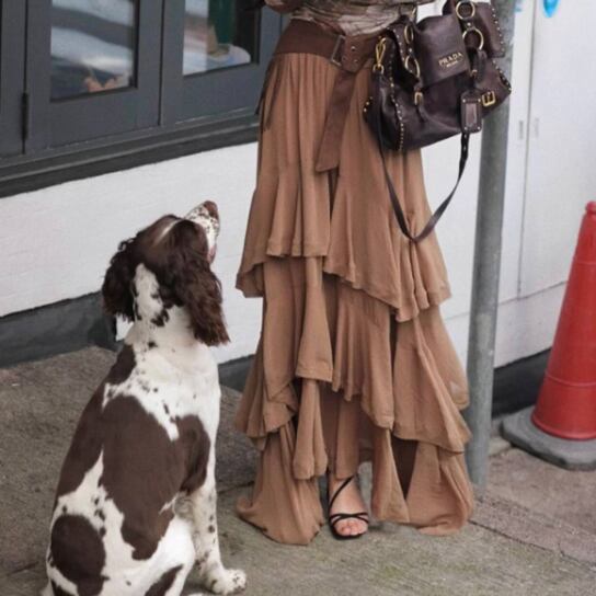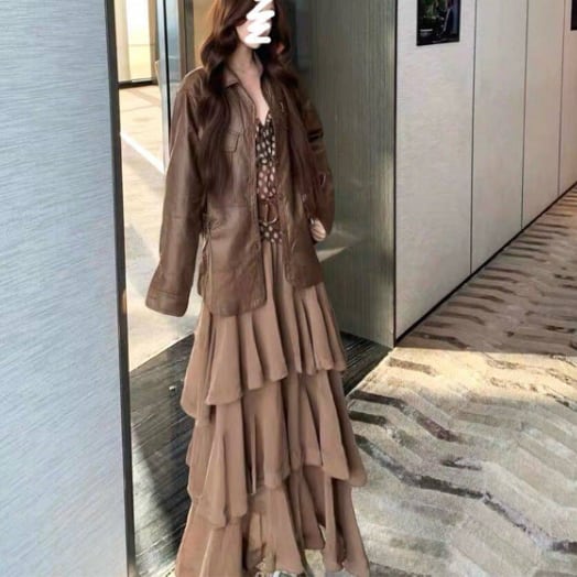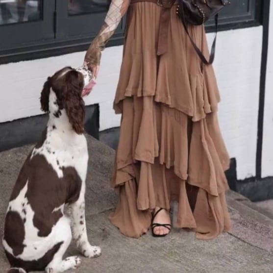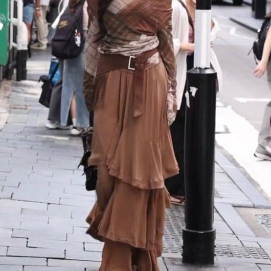 春から秋まで幅広く使えるマキシ丈で、どんなシーンにもぴったり。