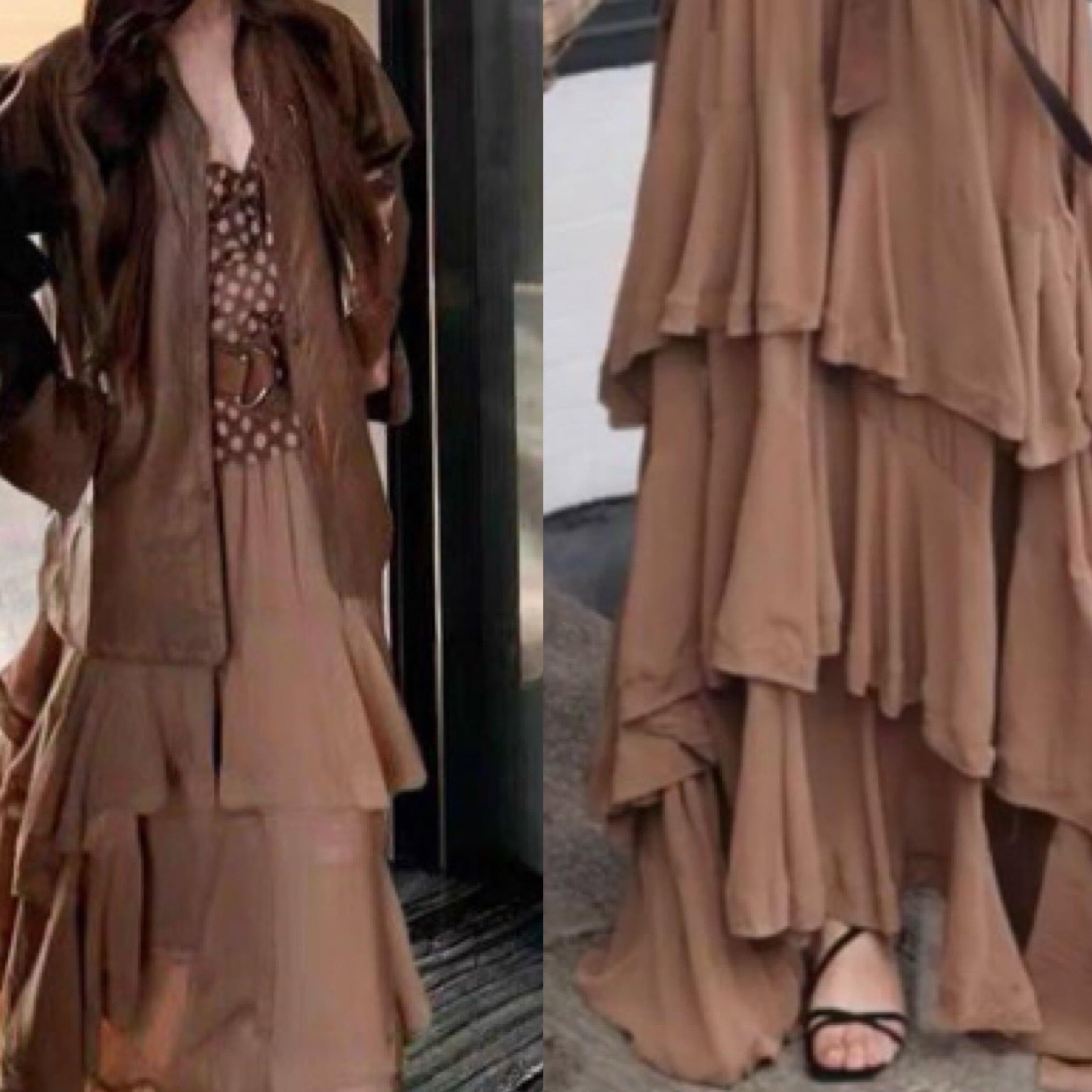 ティアードフリルとアシンメトリーなラインが、さりげなくおしゃれな印象を与えます。