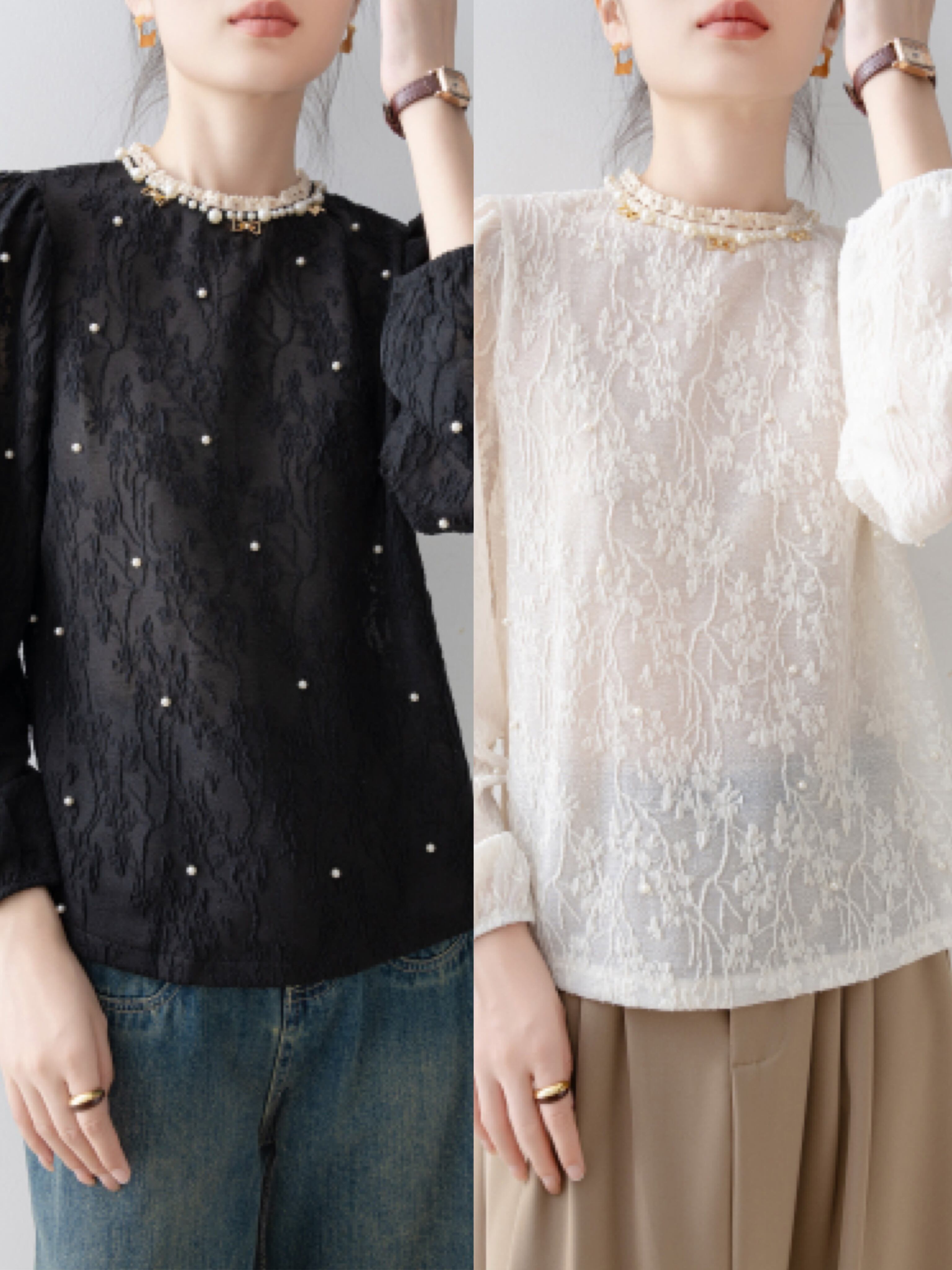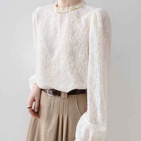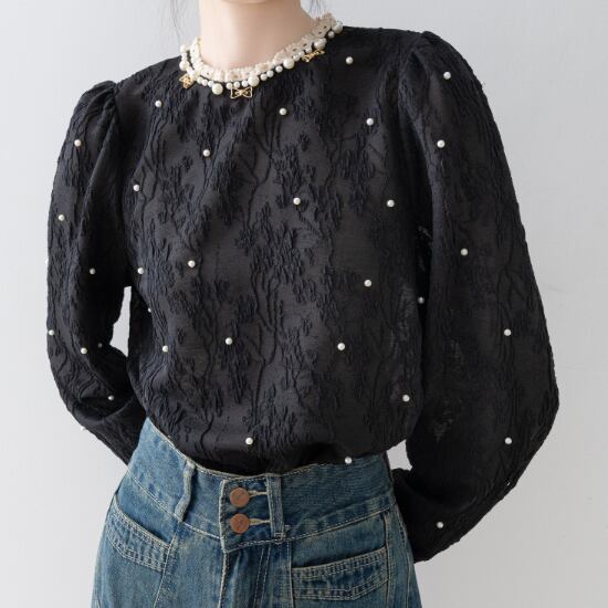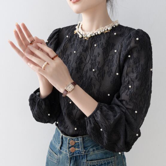 パールがふんだんに散りばめられており、大人フェミニンな雰囲気♪