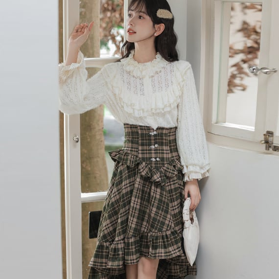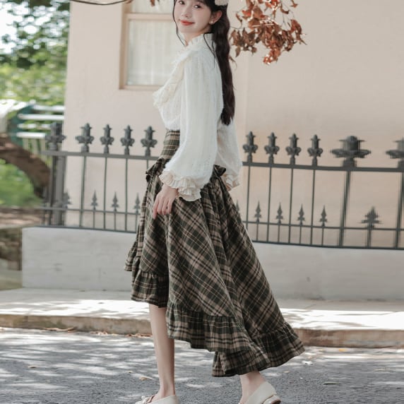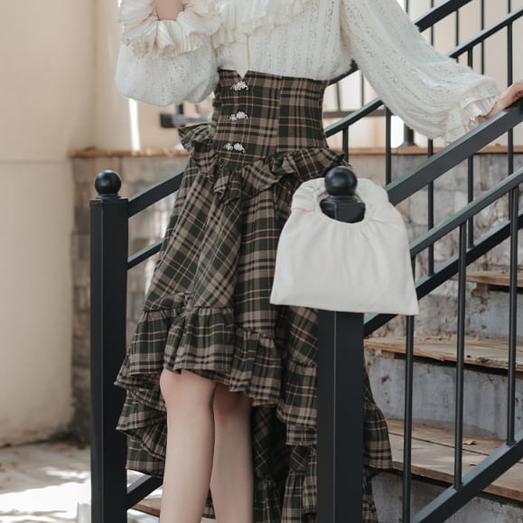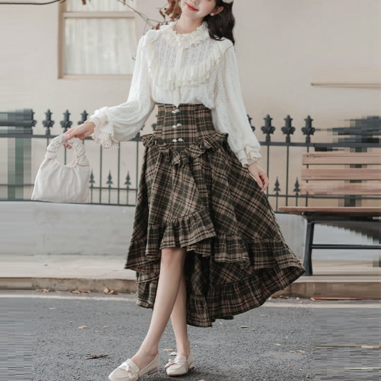 春秋にぴったりなアシンメトリーデザインのロングスカートです。