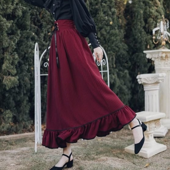 大人の女性にぴったりな、コルセット風デザインのロングスカートです。