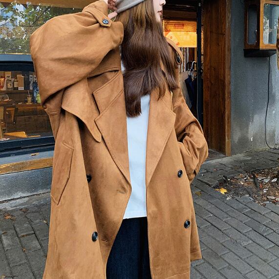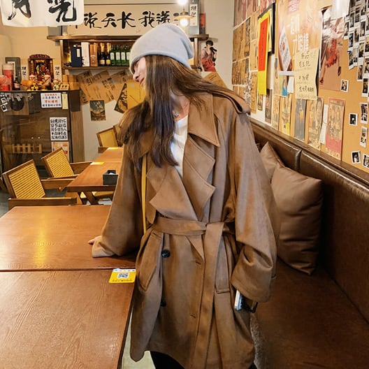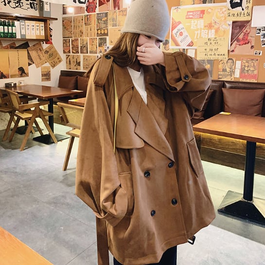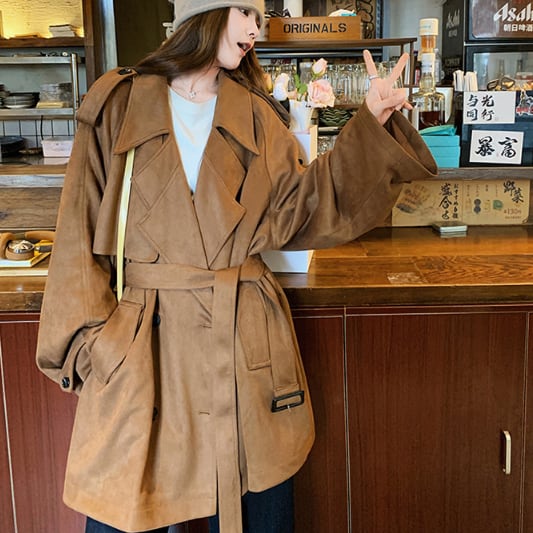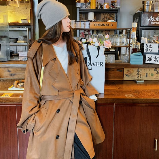 大人可愛い雰囲気漂うスエード素材ののトレンチコートです