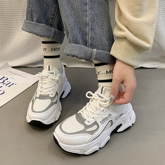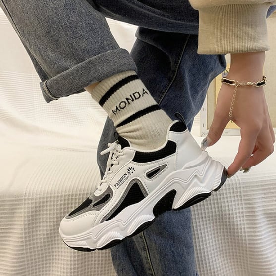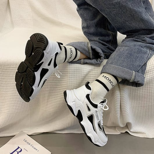 ゴツゴツ感と丸トゥデザインが魅力のレースアップスニーカーです