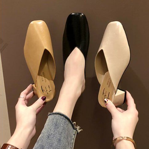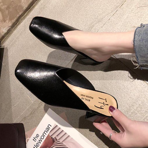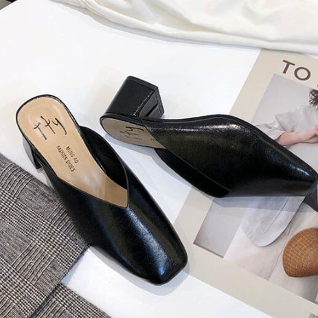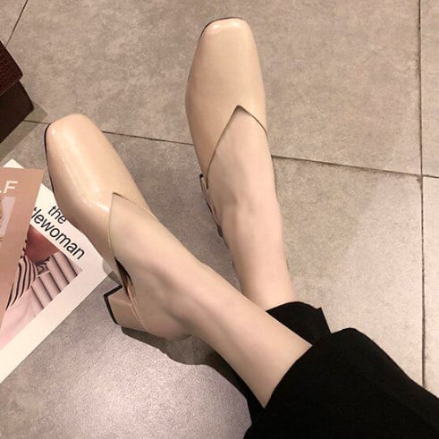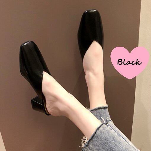 レザー素材のチャンキーヒールパンプスです