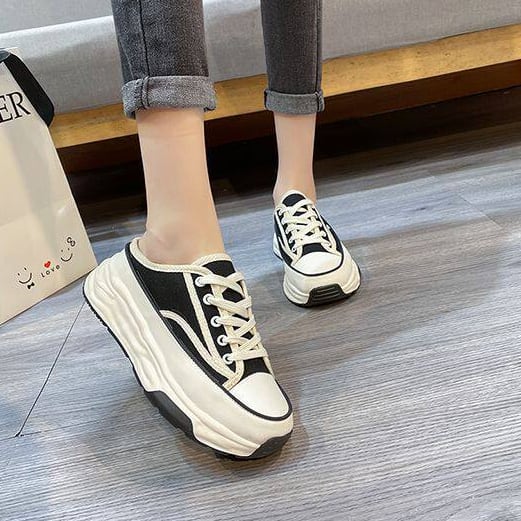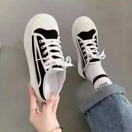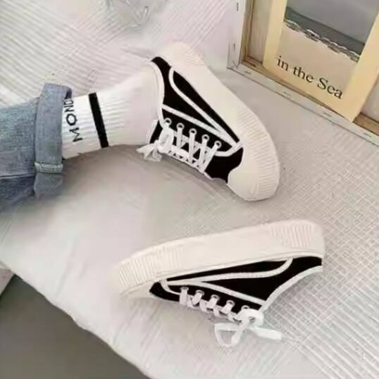 スニーカー風のデザインで、可愛さとカジュアル感を兼ね備えた一足です