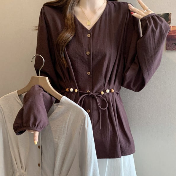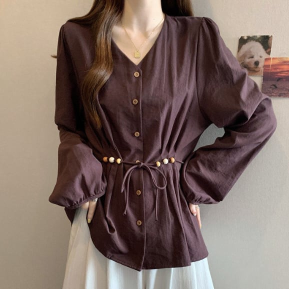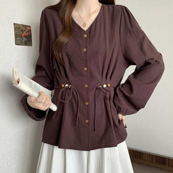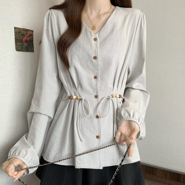 程よい抜け感がある長袖ブラウスです