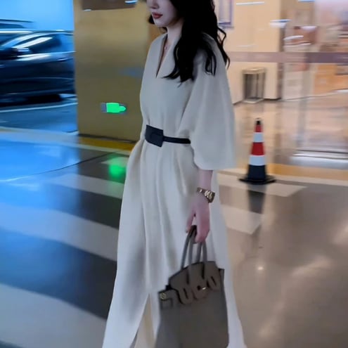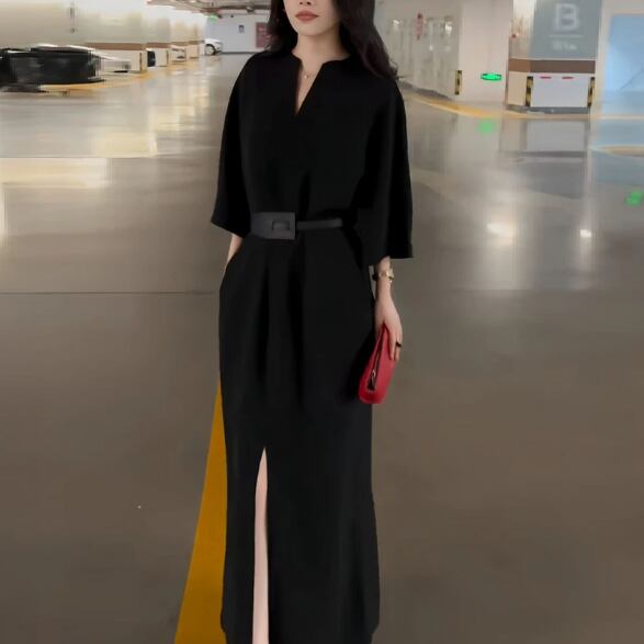 スリット入りのマキシ丈ワンピースです