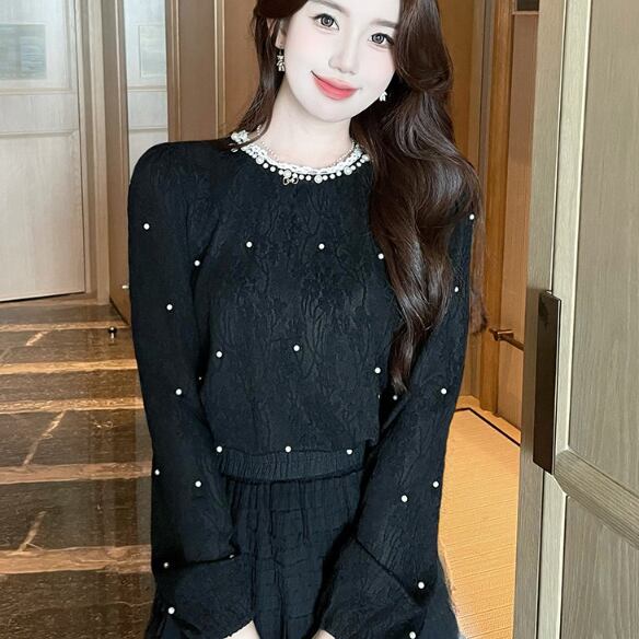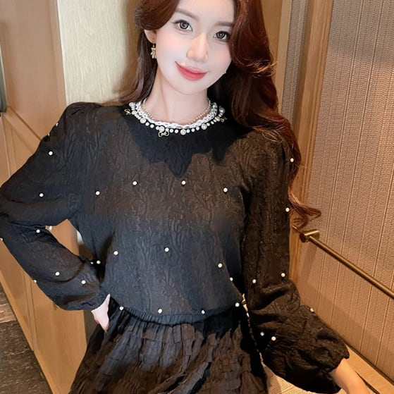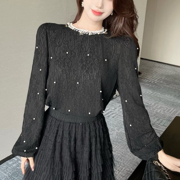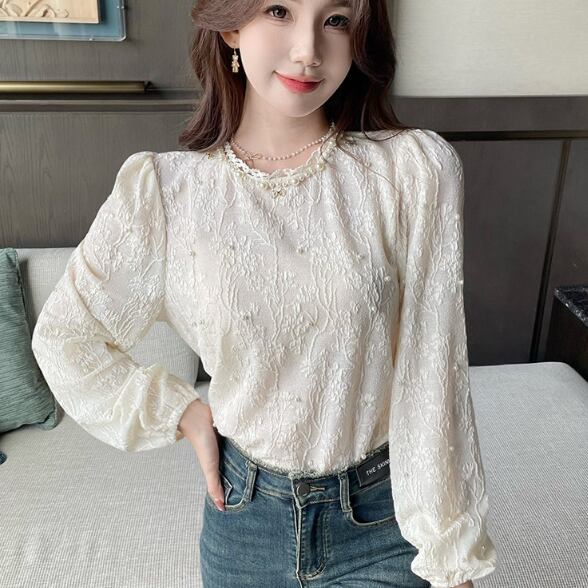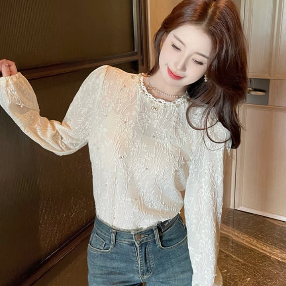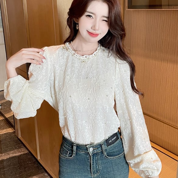 エンボス特有の立体感が特徴的なデコラティブブラウス