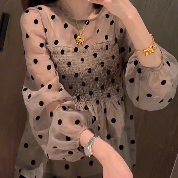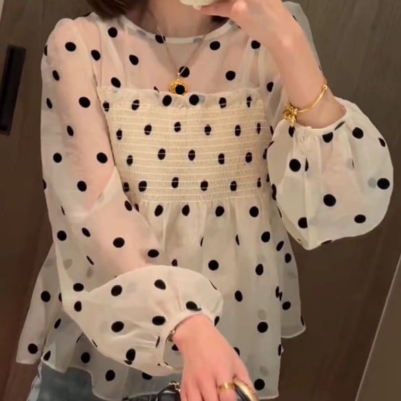 透け感のある薄手生地が軽やかさを演出するブラウスです♪