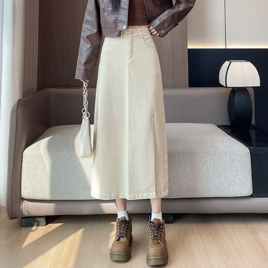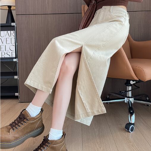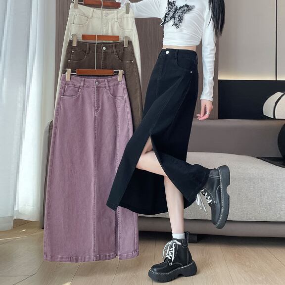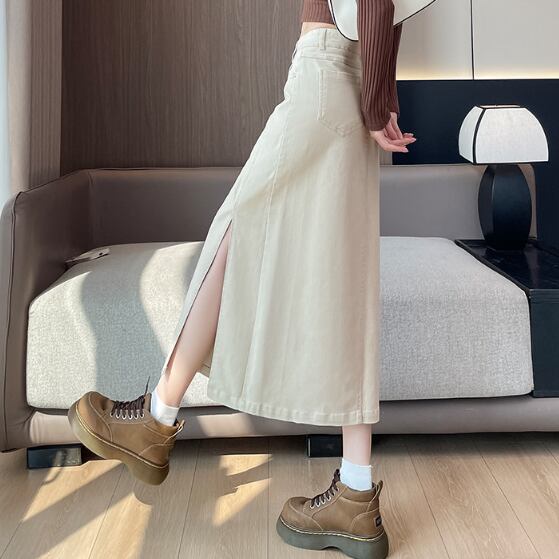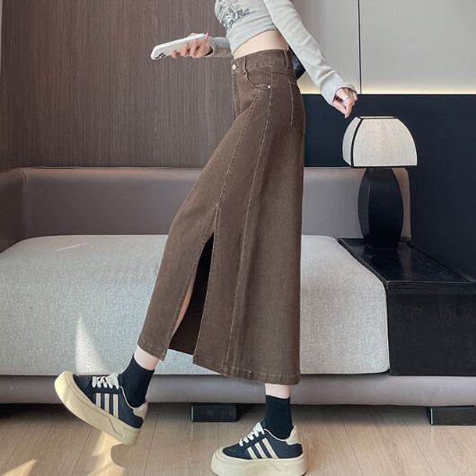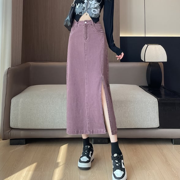 大胆スリットのデニムスカートです