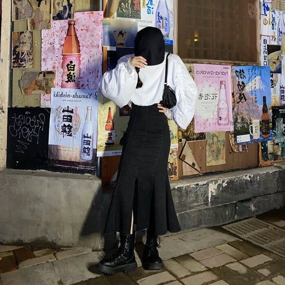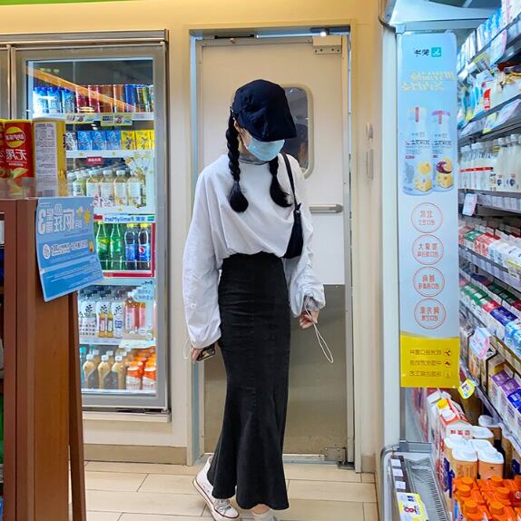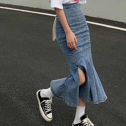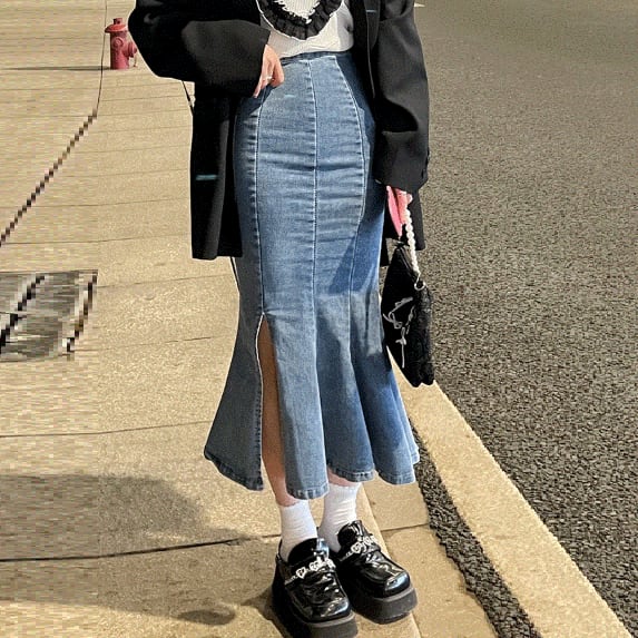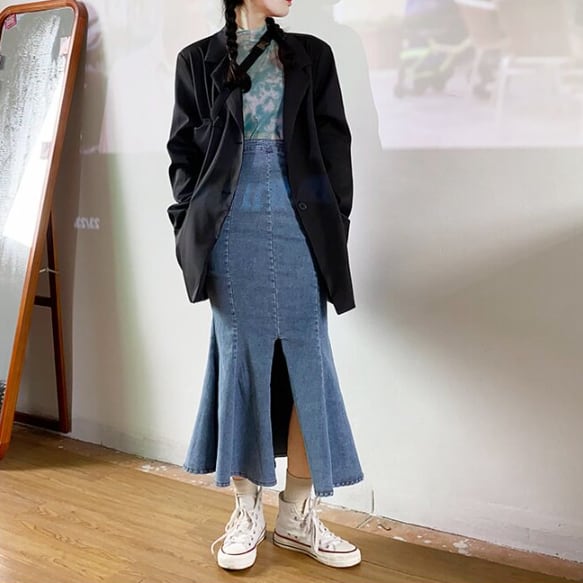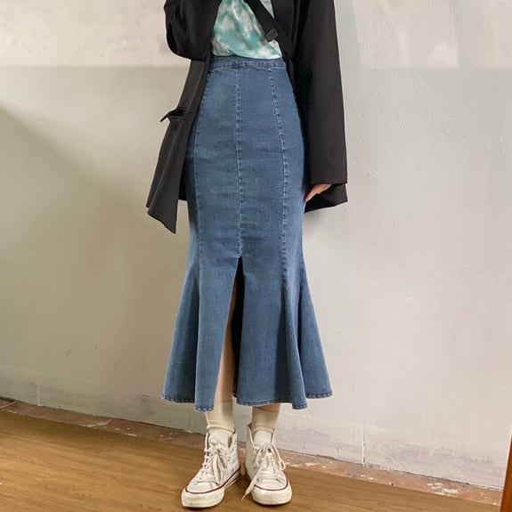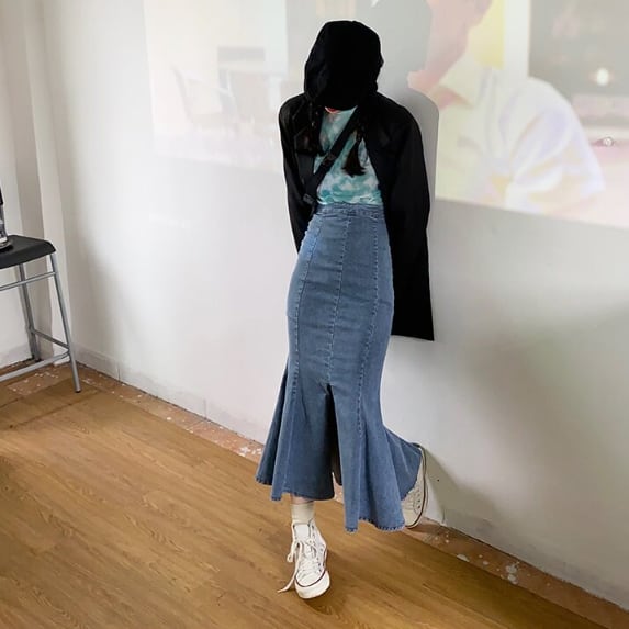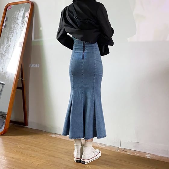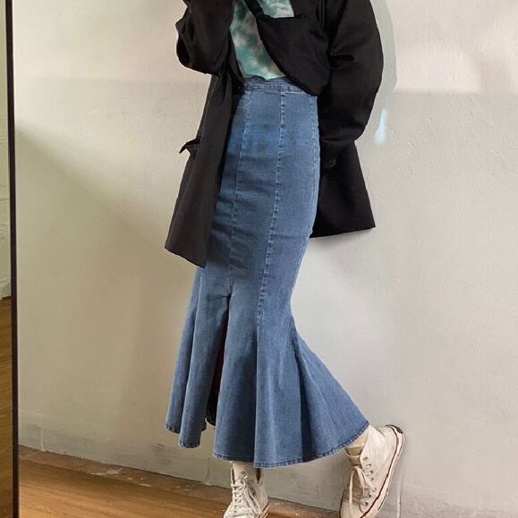デニム生地のマーメイドスカートです
