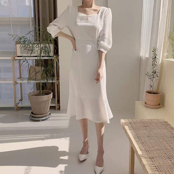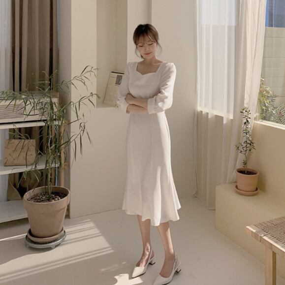 マーメイド特有のシルエットが大人の上品さを引き立て、様々なお出かけシーンでの着回しが可能です。
