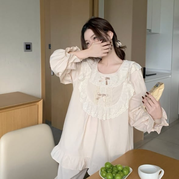 春のリラックスタイムやリモートワークにも最適なこのパジャマは、シンプルでありながら華やかなデザインが魅力。