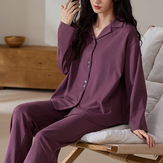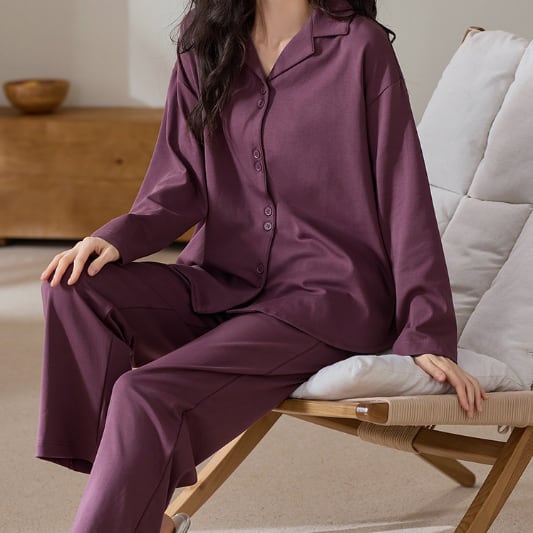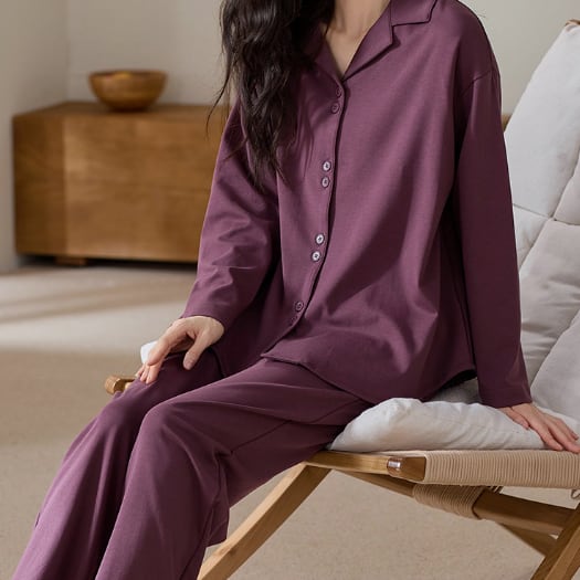 シンプルでありながら、エレガントさが際立つパジャマ上下セットです♪