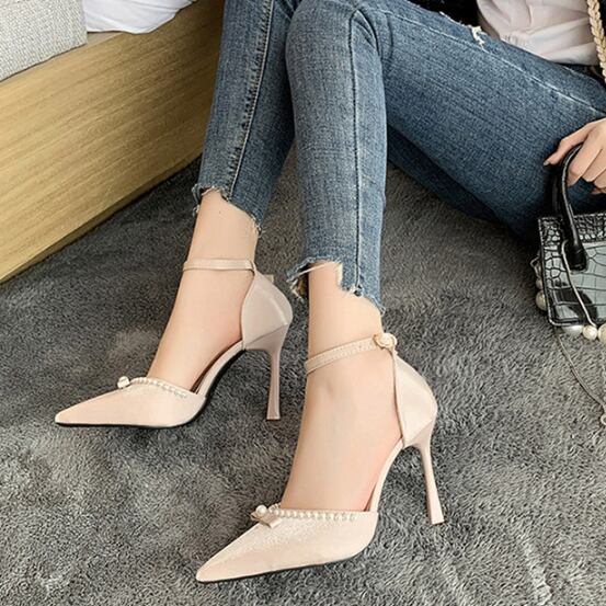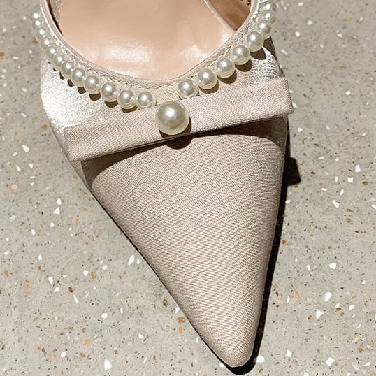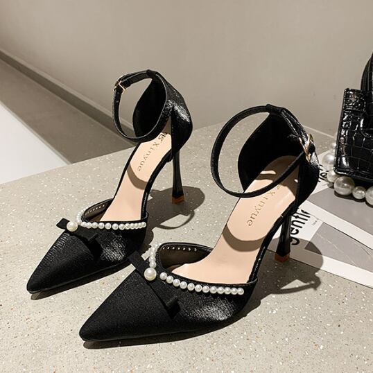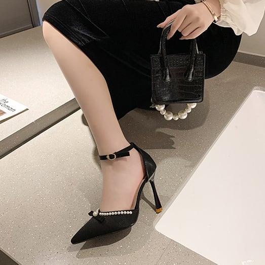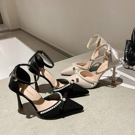 バール装飾が目を引くピンヒールパンプスです