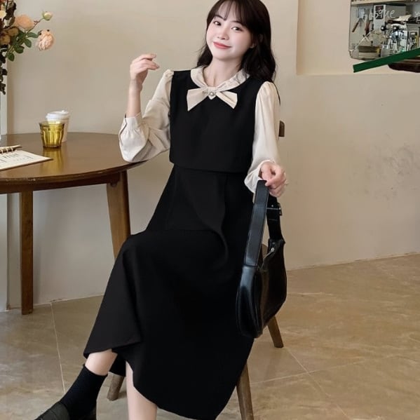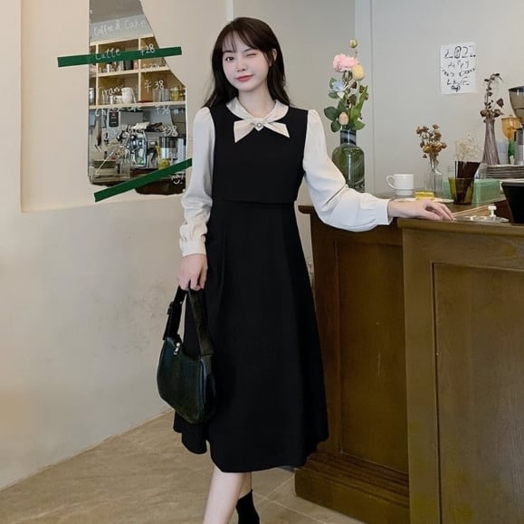 バイカラーの装飾リボンが、大人可愛いスタイルを演出♡