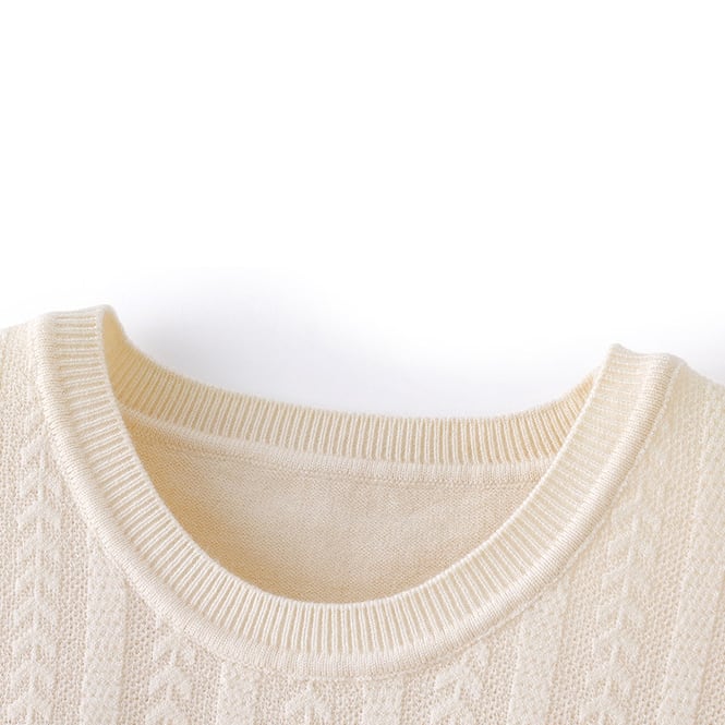 レース装飾が可愛いリブニットセーターです