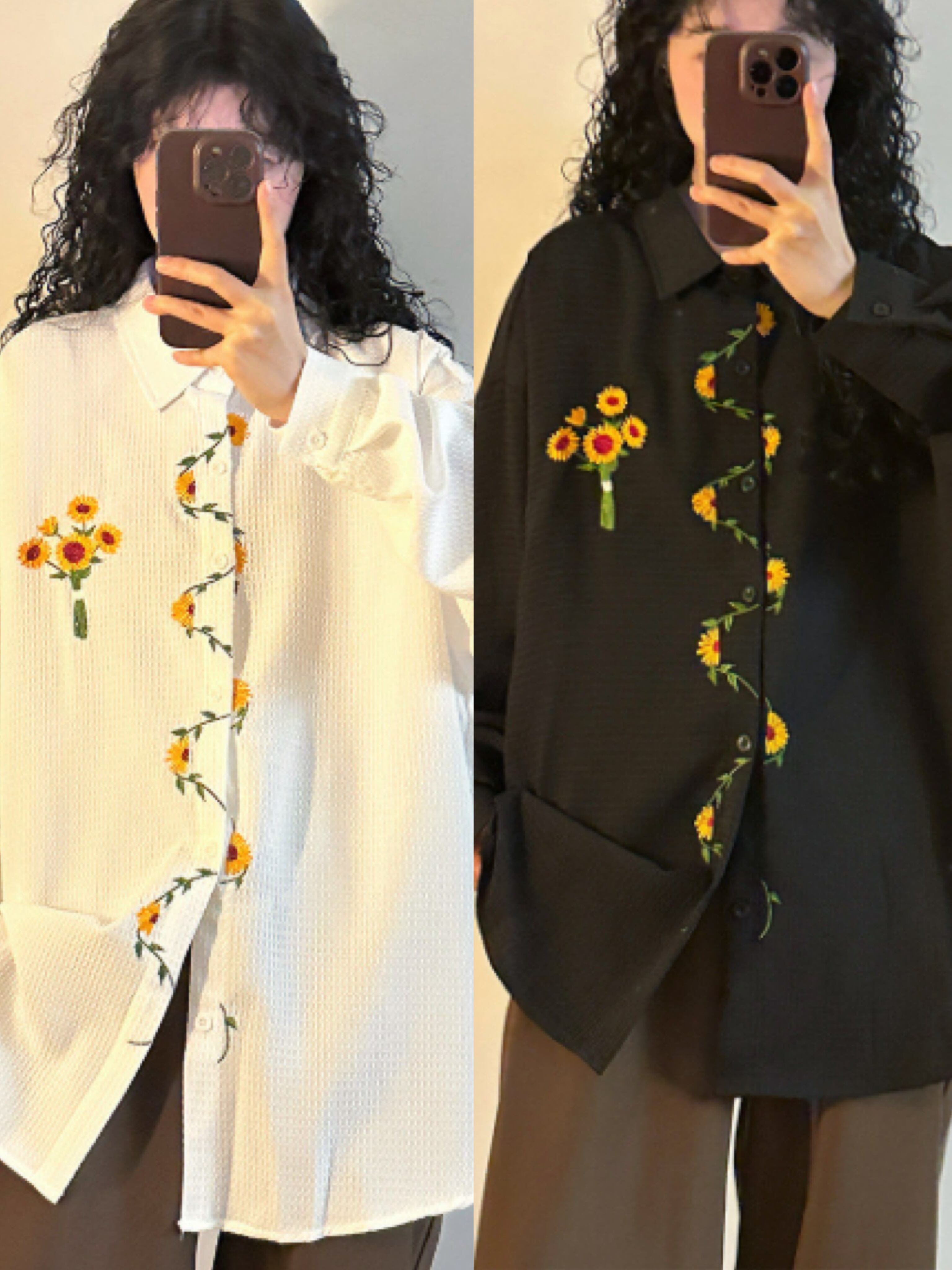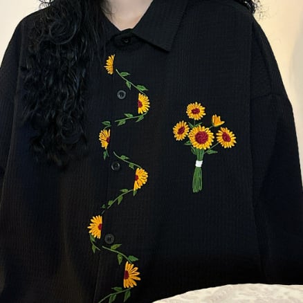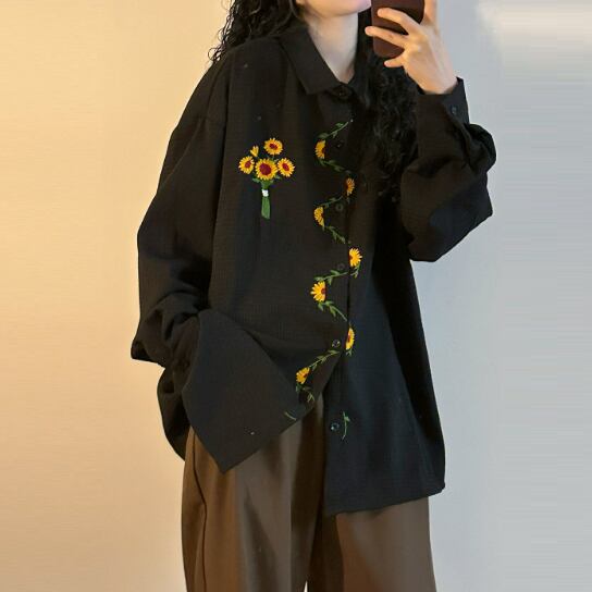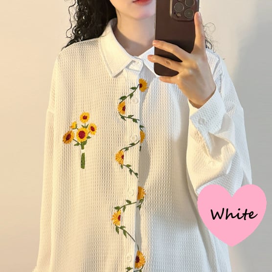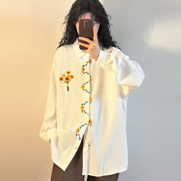 花柄刺繍が可愛いロングブラウスです