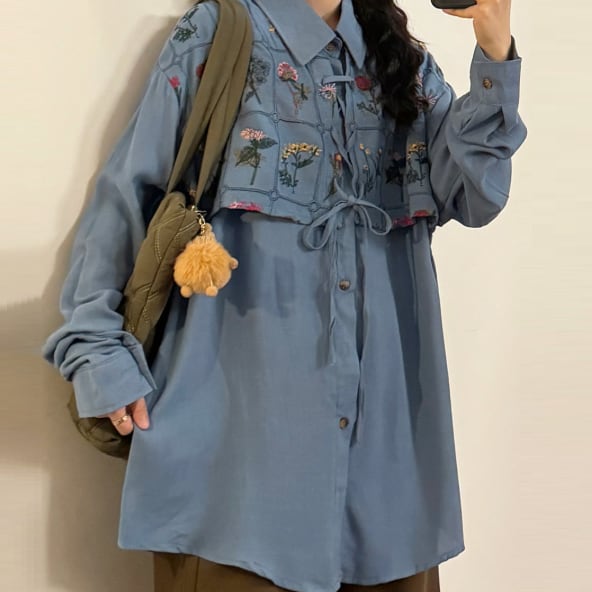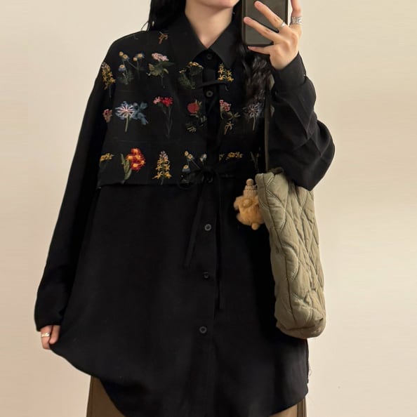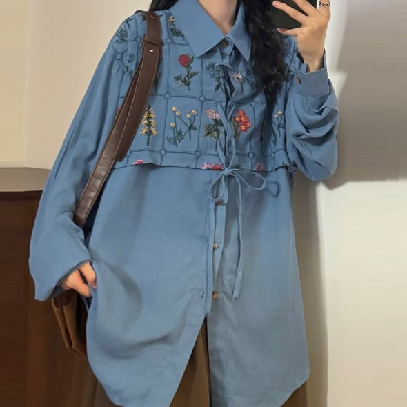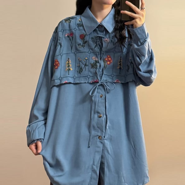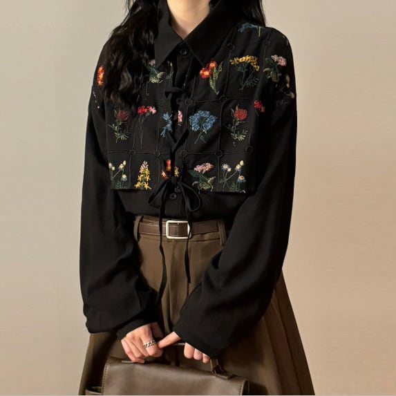 花柄刺繍が可愛いロングブラウスです