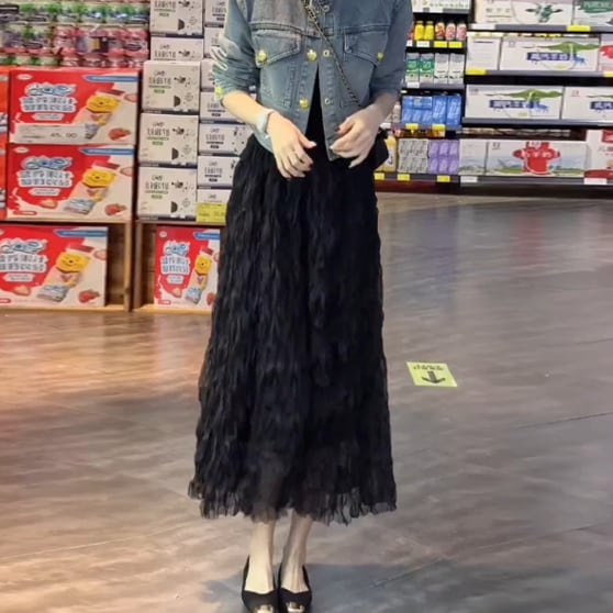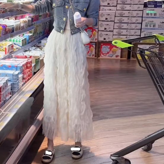 くしゅくしゅ感が可愛いマキシ丈スカートです