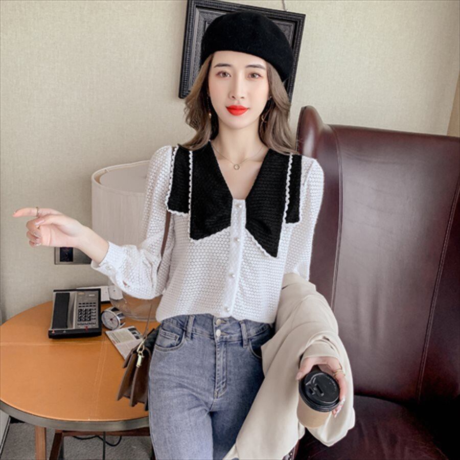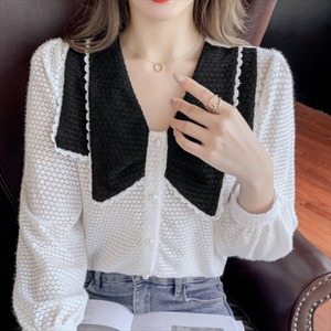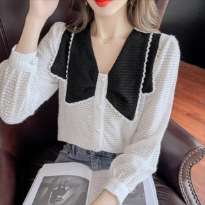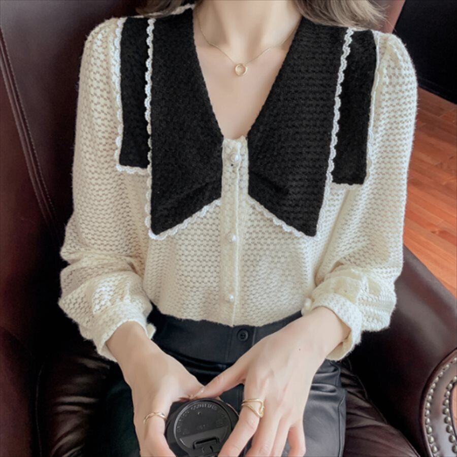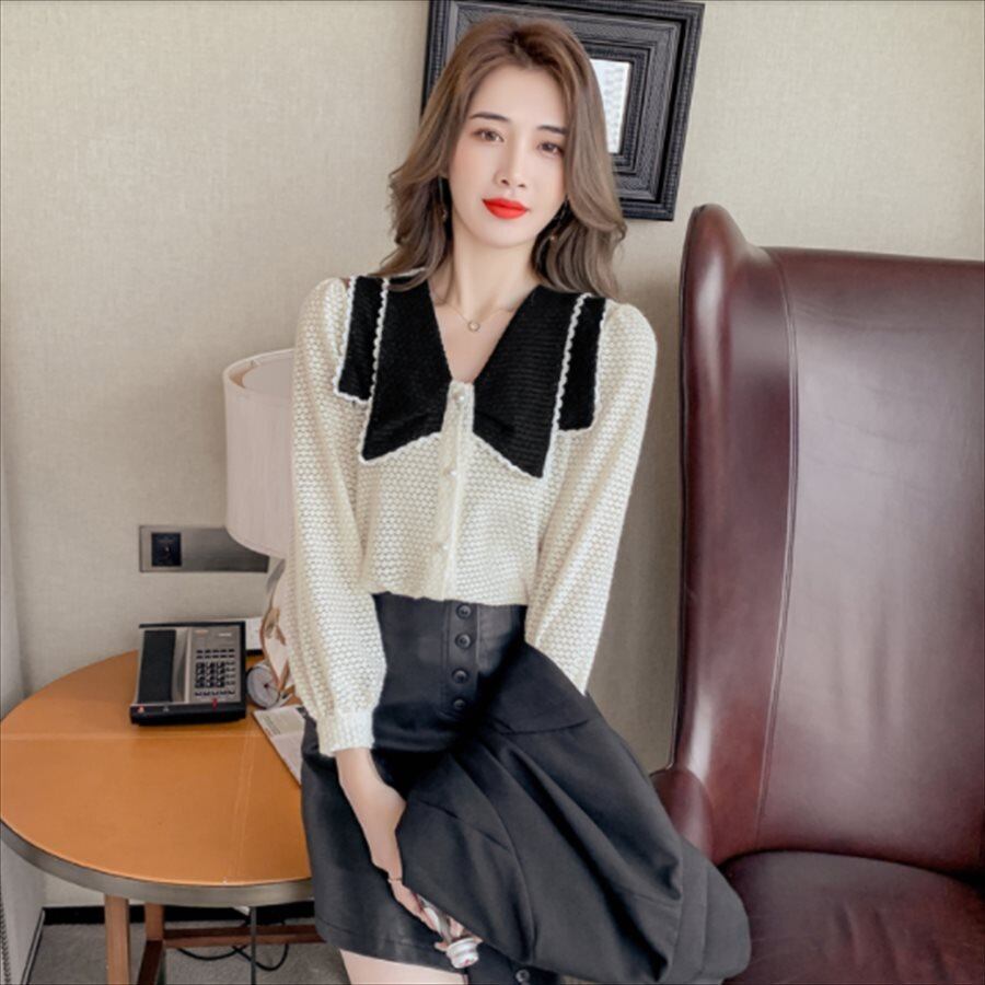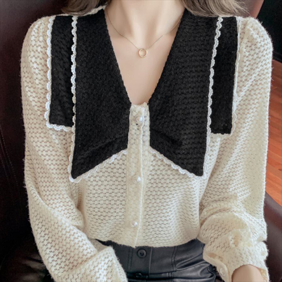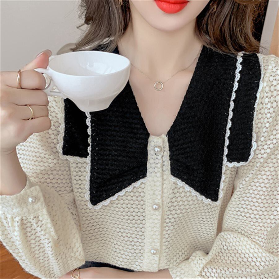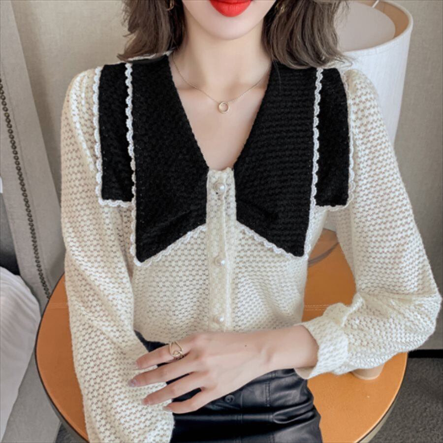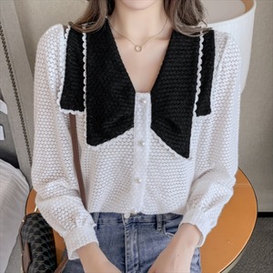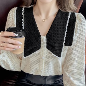 バイカラーデザインの長袖セーターです。