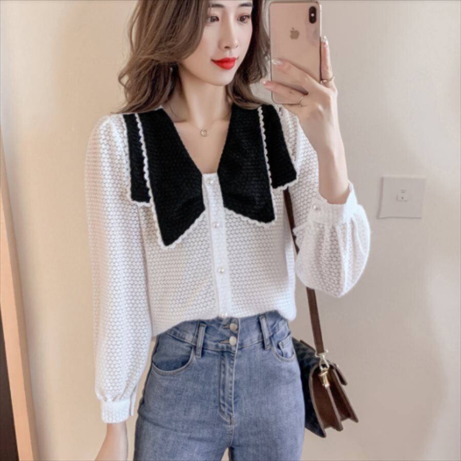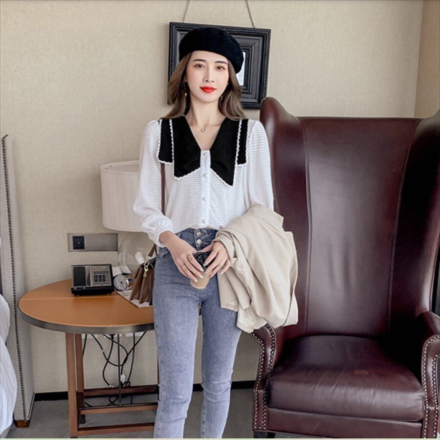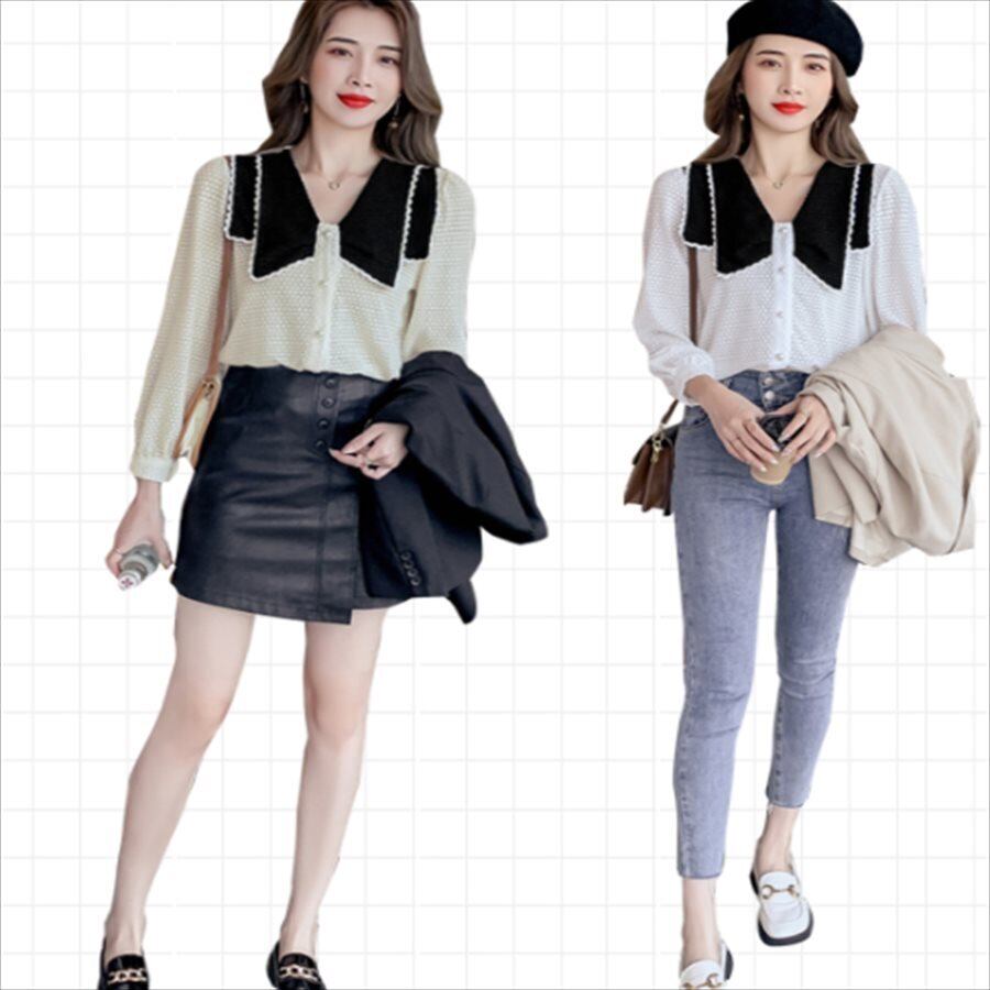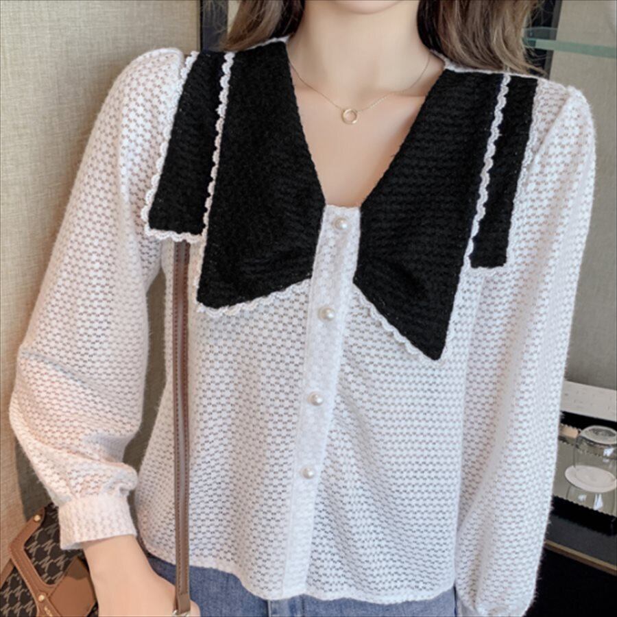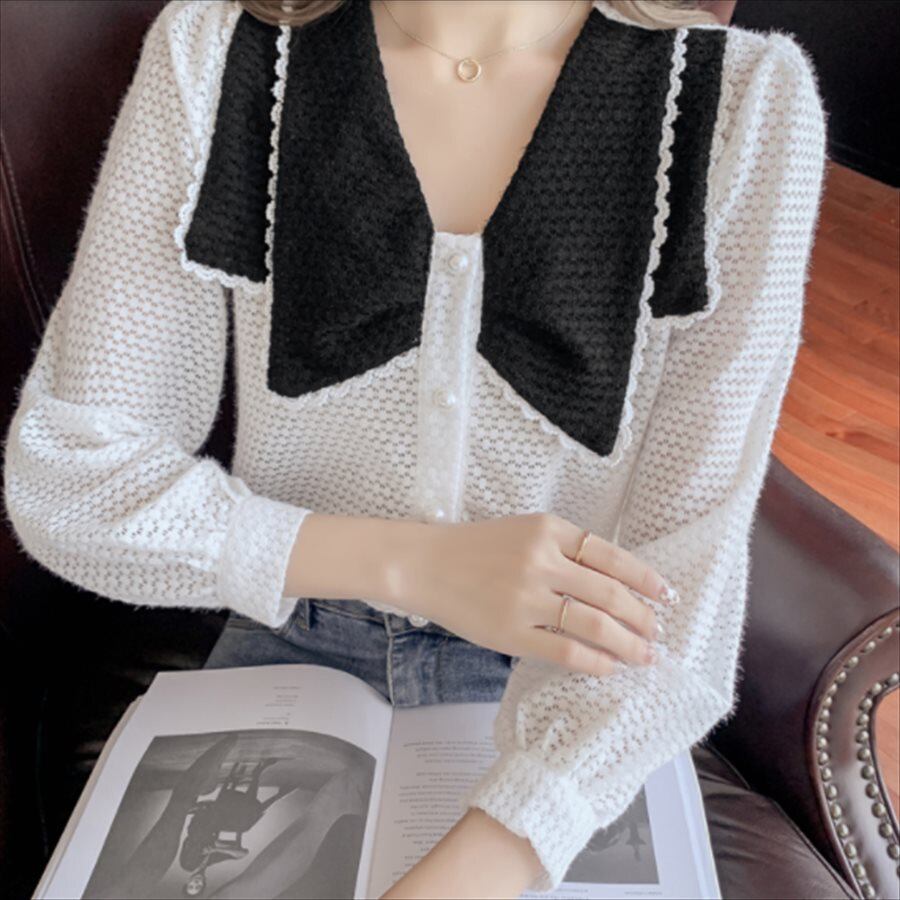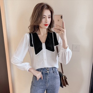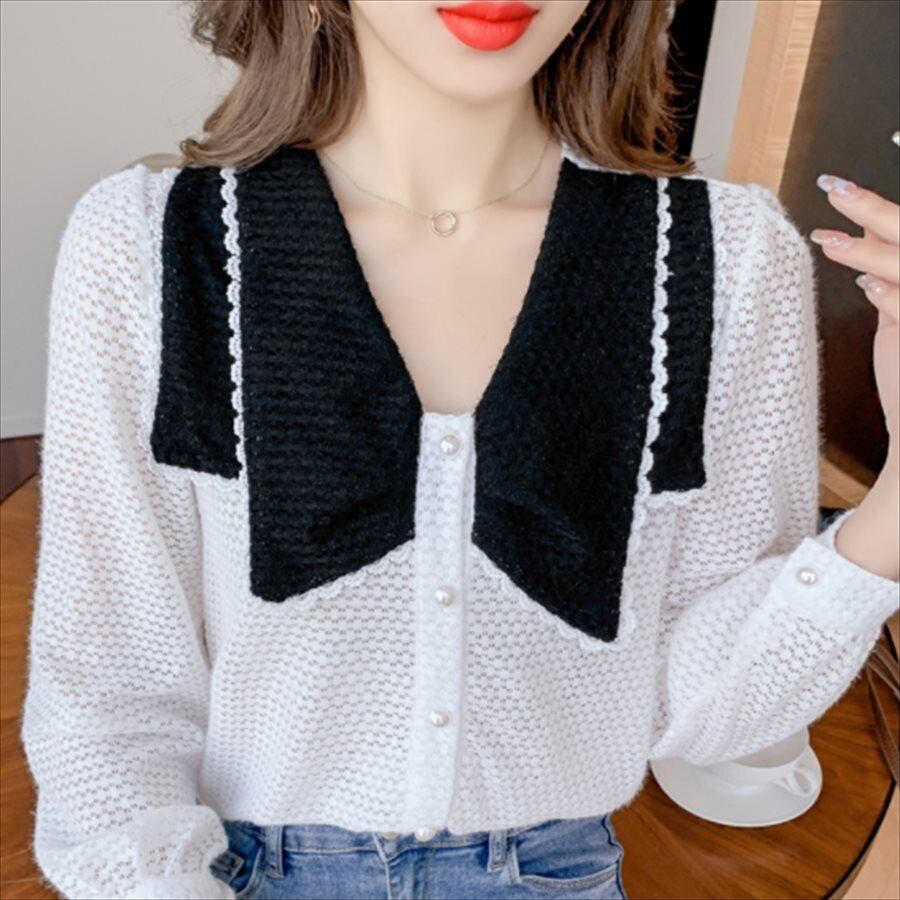バイカラーデザインの長袖セーターです。