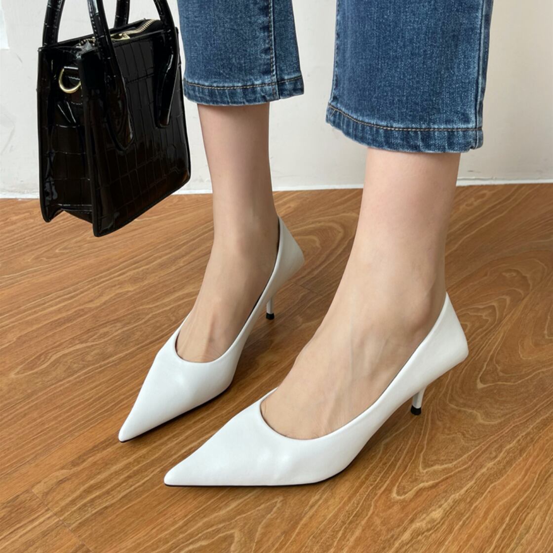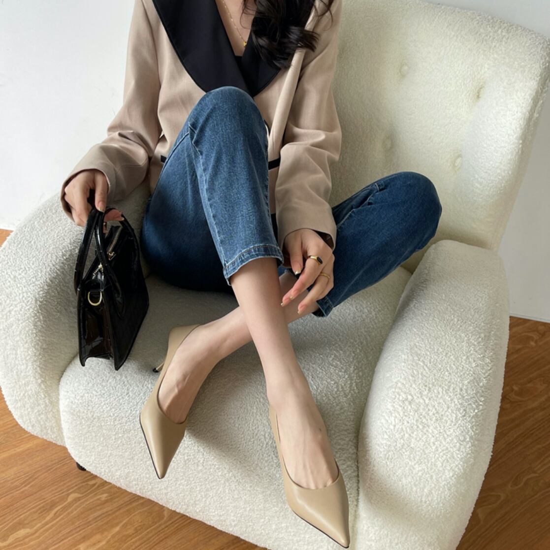 飽きのこないシンプルなデザインのポインテッドトゥパンプス。