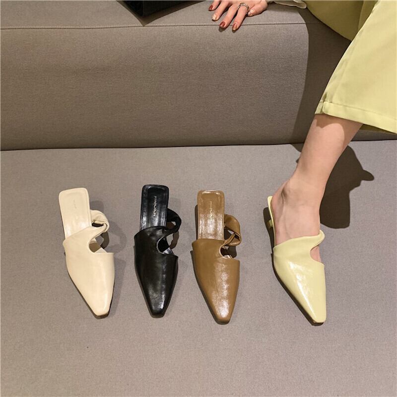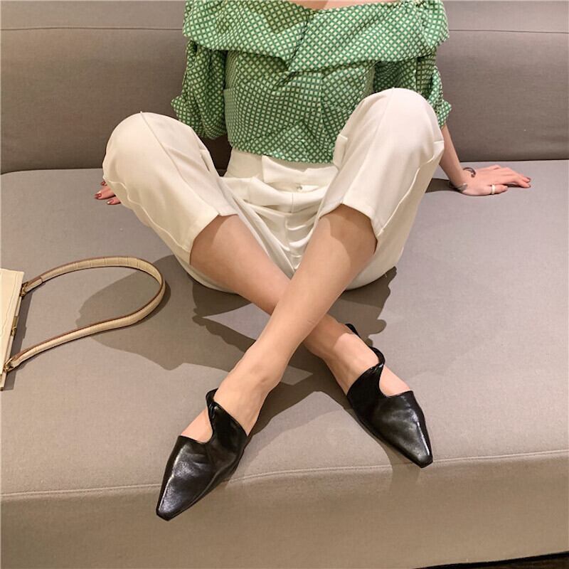 シンプルなスクエアトゥのスリッパサンダル。