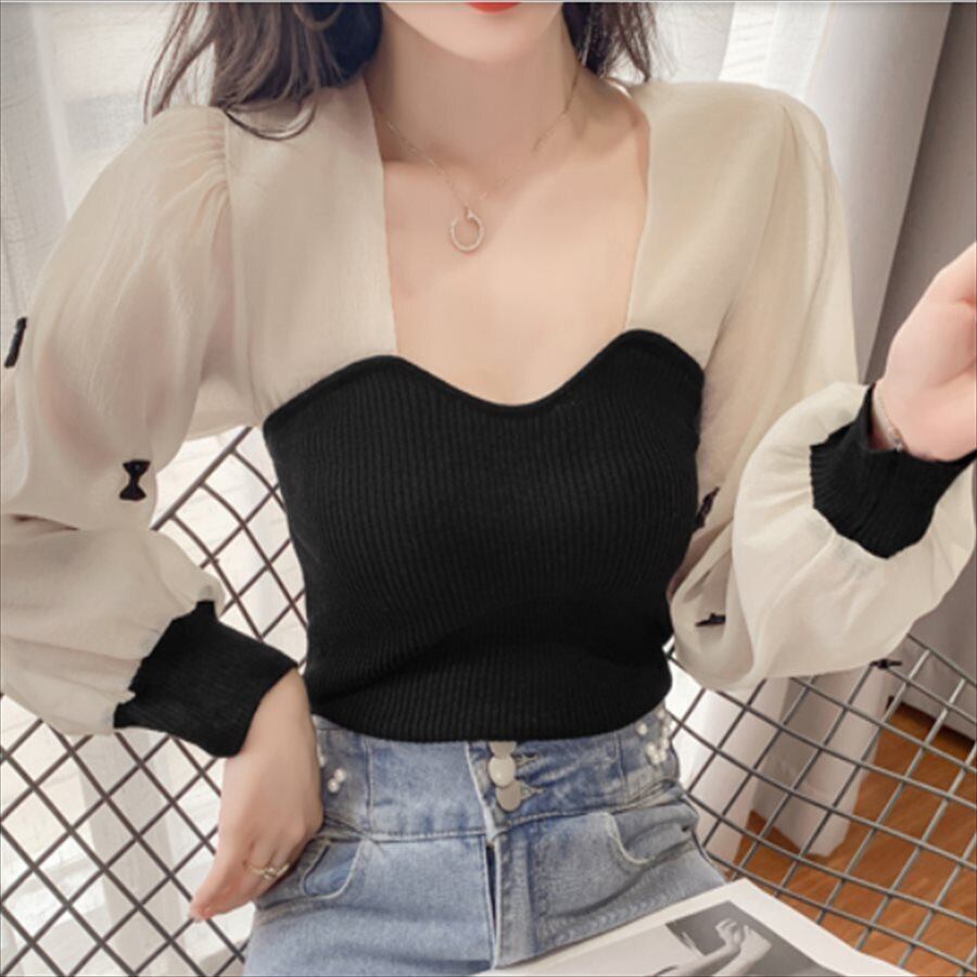 ニット生地とのドッキングがお洒落♡