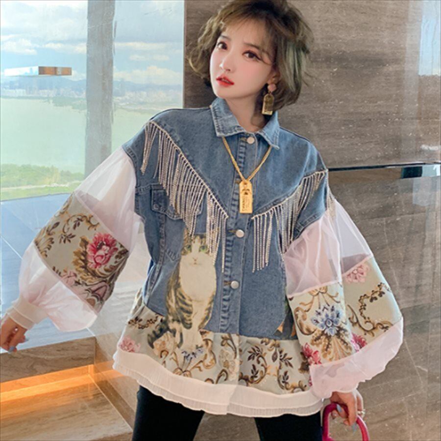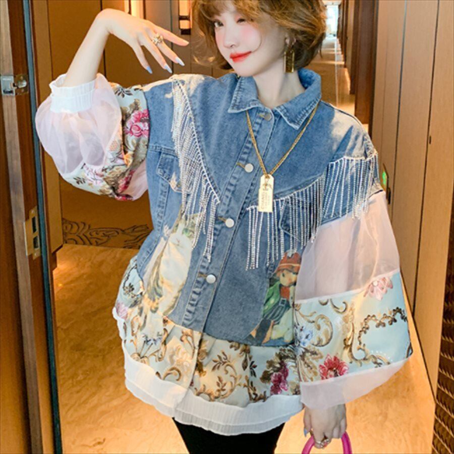デニムとの異素材切り替えデザインがお洒落♡