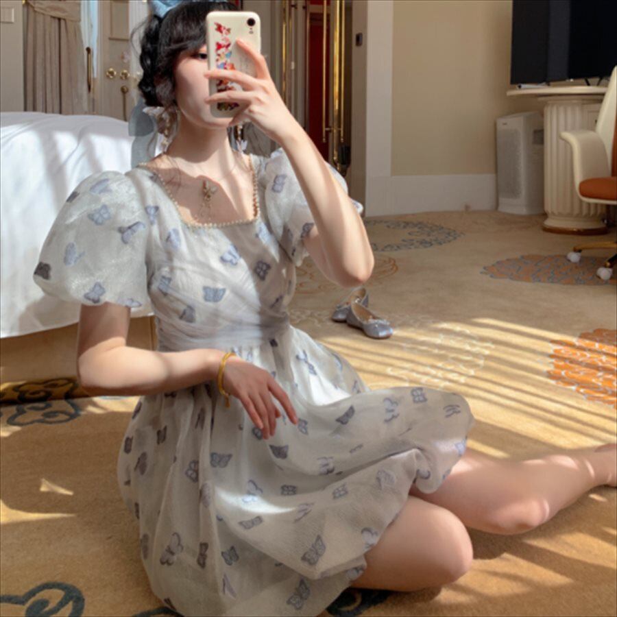 蝶々柄のミニドレス♡