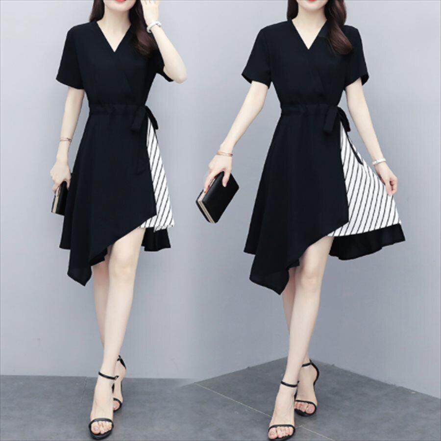 無地とストライプ柄の切り替えがお洒落♡